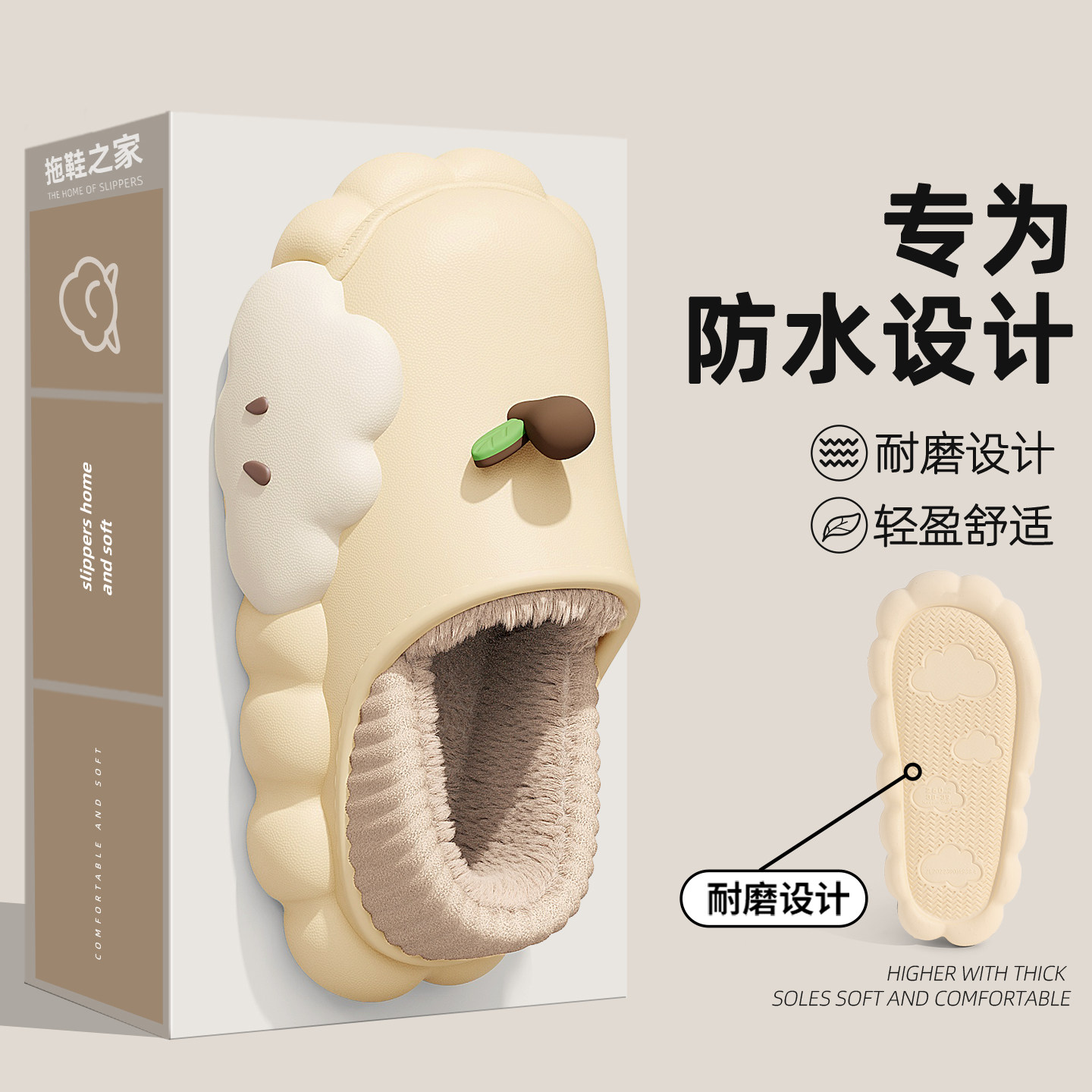 防水棉拖鞋女2025新款秋冬季家居毛绒保暖厚底包跟棉鞋男情侣外穿