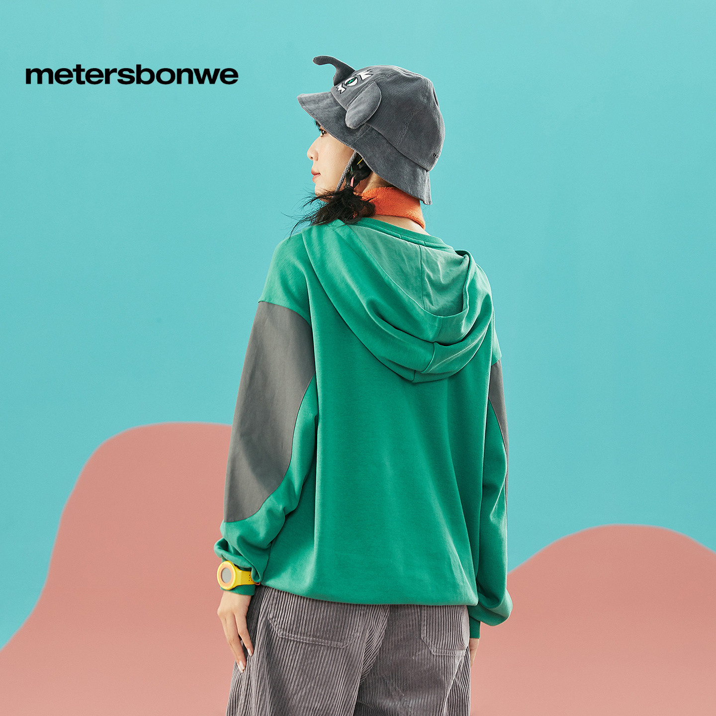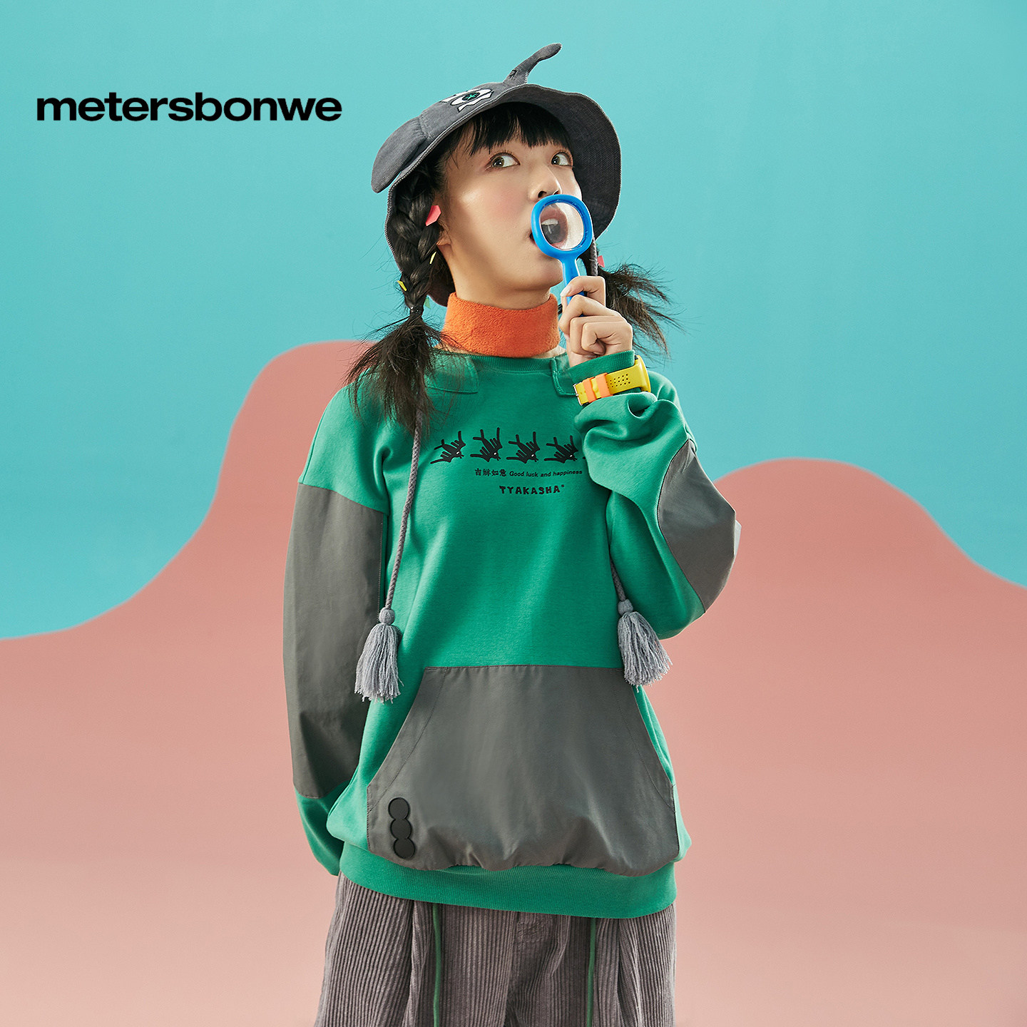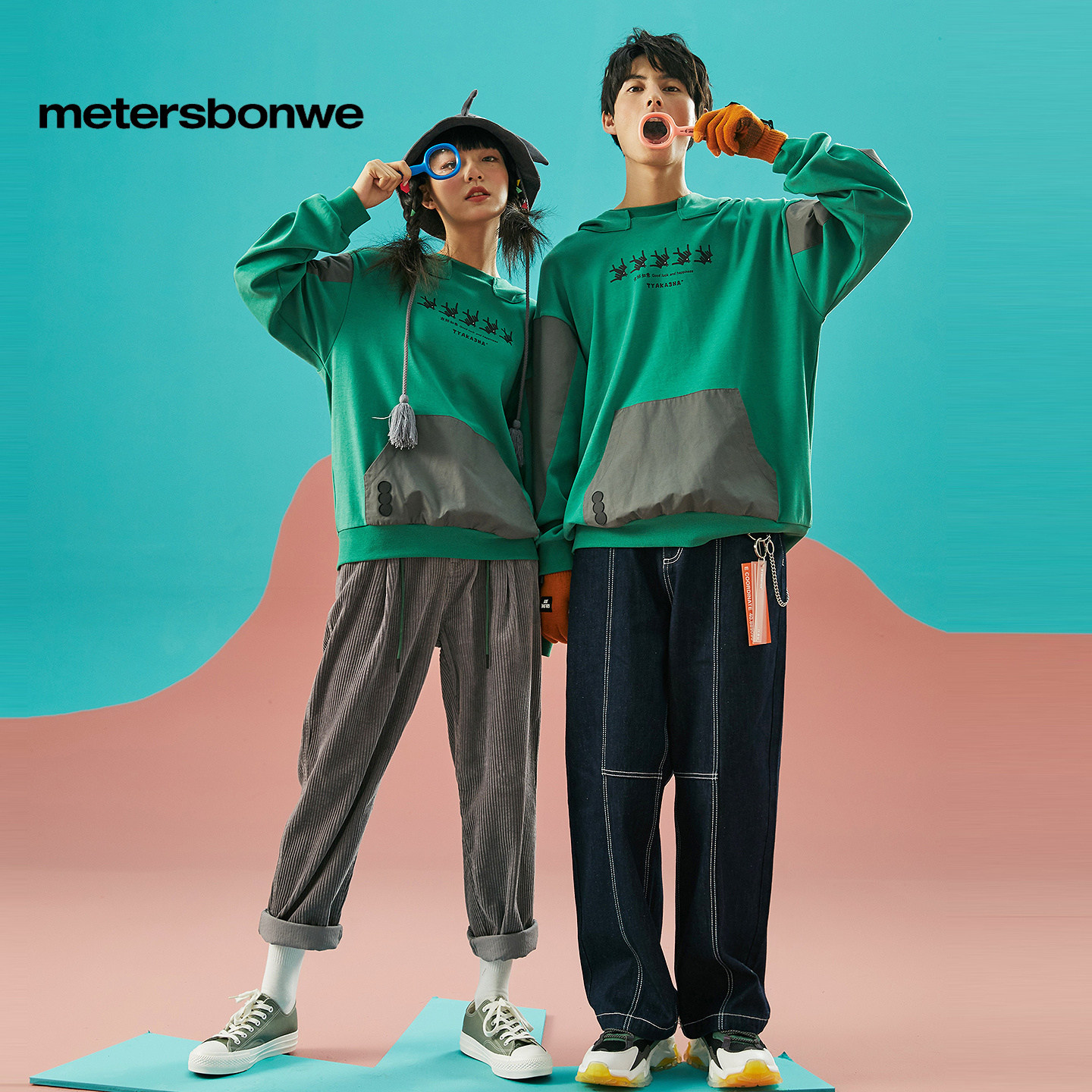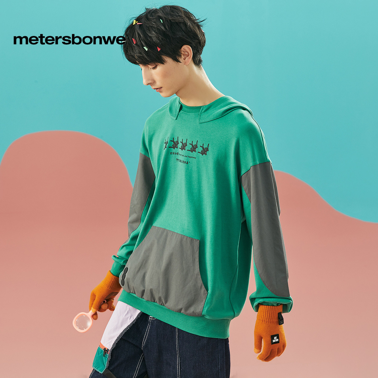 美特斯邦威圆领卫衣男拼接撞色潮流时尚百搭潮牌情侣装宽松上衣