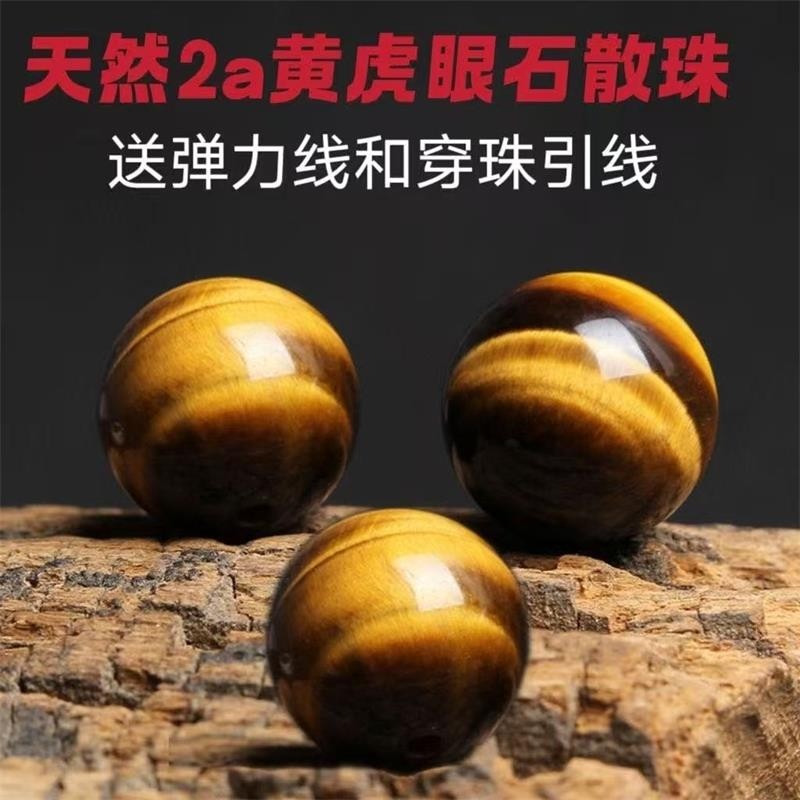 天然黄虎眼石散珠虎睛石diy水晶珠子手工编织饰品配件散珠子配饰
