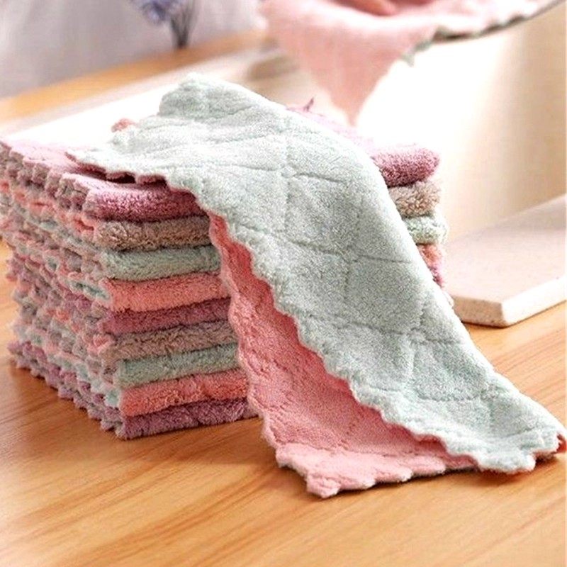 厨房抹布专用洗碗布加厚纯棉小方巾吸水不掉毛珊瑚绒洗碗帕不沾油