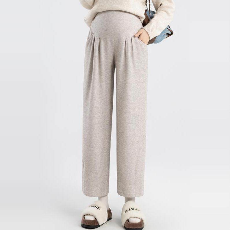 孕妇裤子春秋季外穿秋冬加绒外穿阔腿裤糯米裤休闲直筒长裤孕妇装