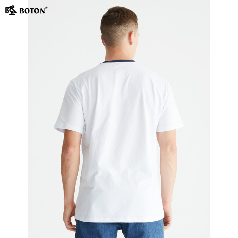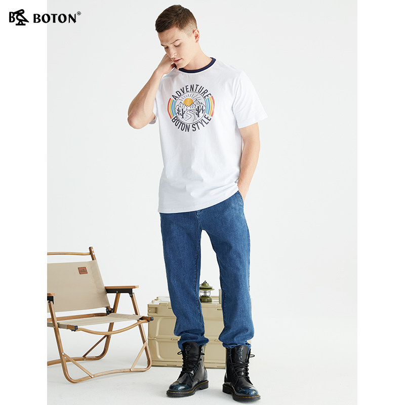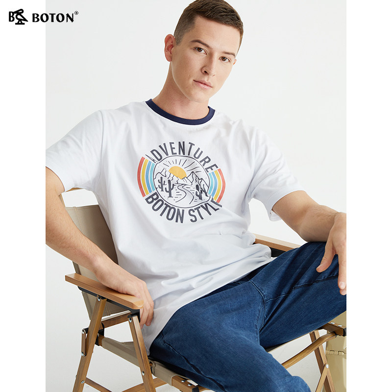 波顿夏季新款圆领T恤短袖男潮牌潮流百搭纯色印花宽松白色体恤衫