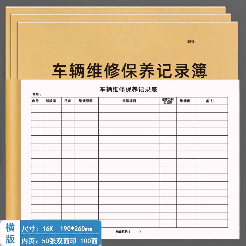 车辆维修保养记录本车辆汽车维修保养4S店单位企业公司汽车保养登记表维修修车登记本车辆使用登记本可定制