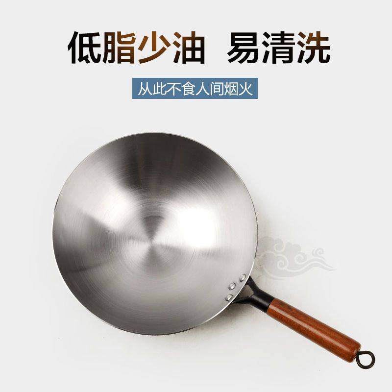 【新品】康巴赫Pro版真钛0涂层炒锅无涂层家用不粘锅不锈钢炒菜锅