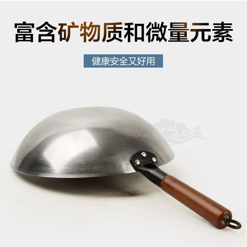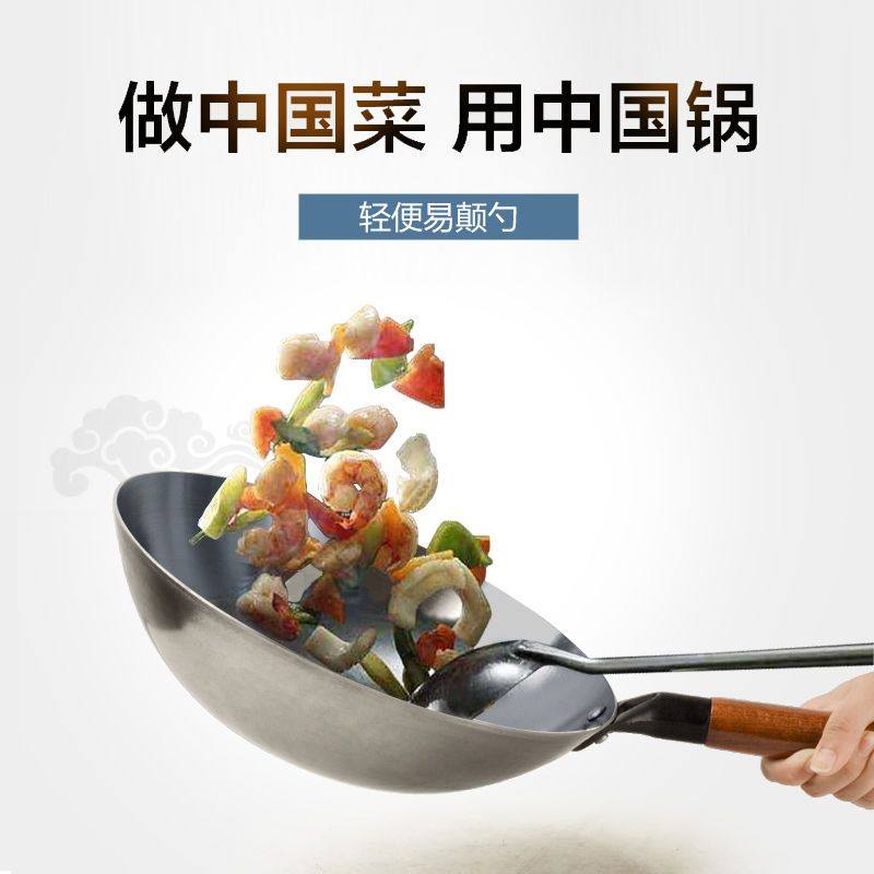 大铺铁锅传统老式纯铁锅木柄炒锅家用煤气灶圆底健康无涂层炒菜锅