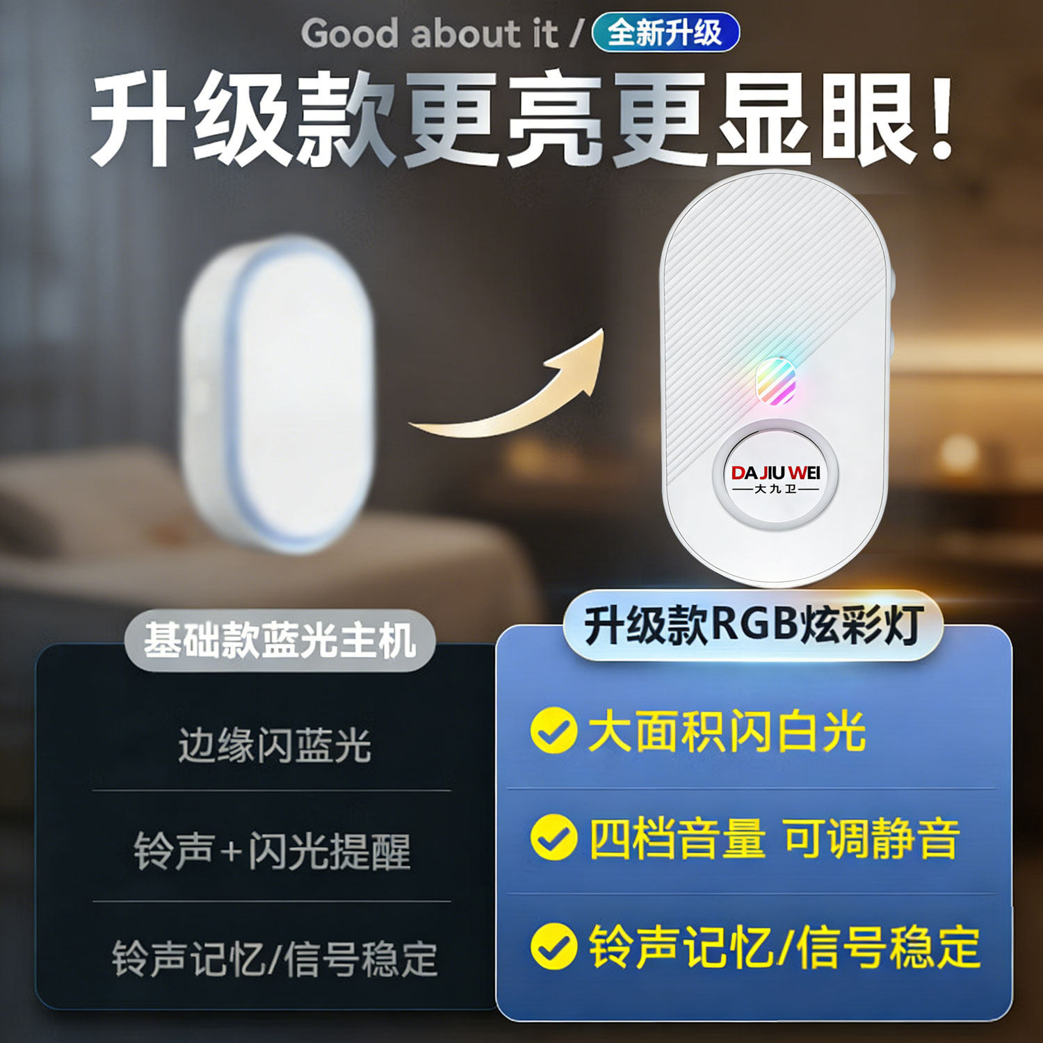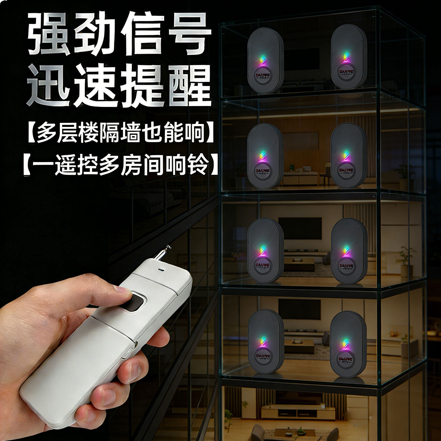 超远距离 声光闪烁提醒 可静音 支持一拖多