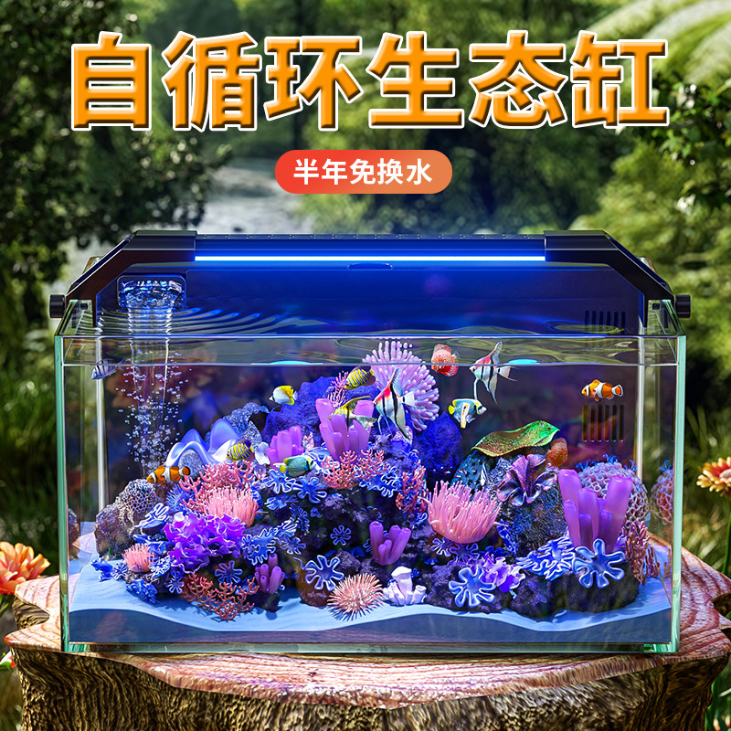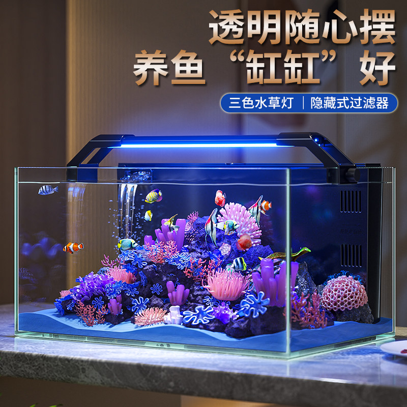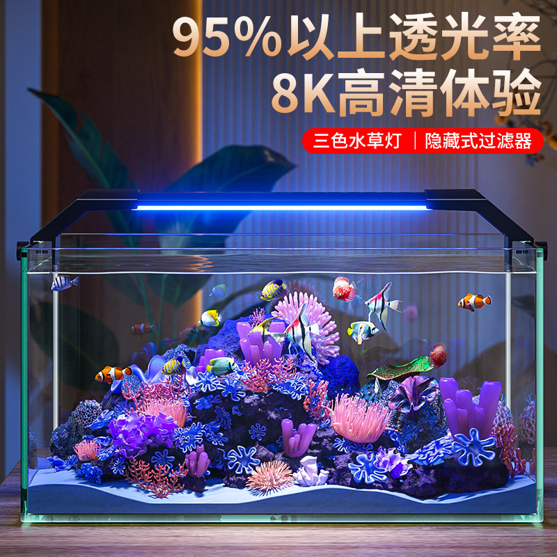金晶新款玻璃鱼缸过滤制氧一体机2025超白背滤循环金鱼家用造景缸