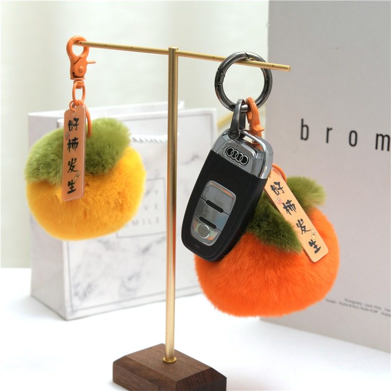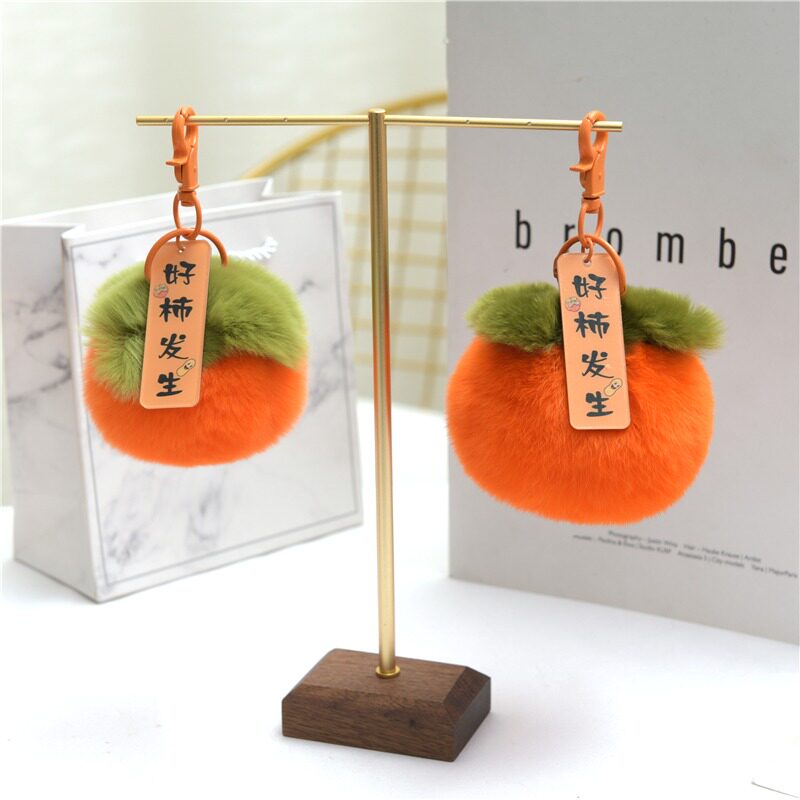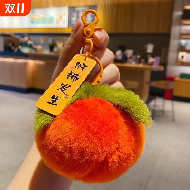 毛绒挂件好柿发生小柿子仿獭兔毛柿柿如意毛毛绒球包包挂件钥匙扣