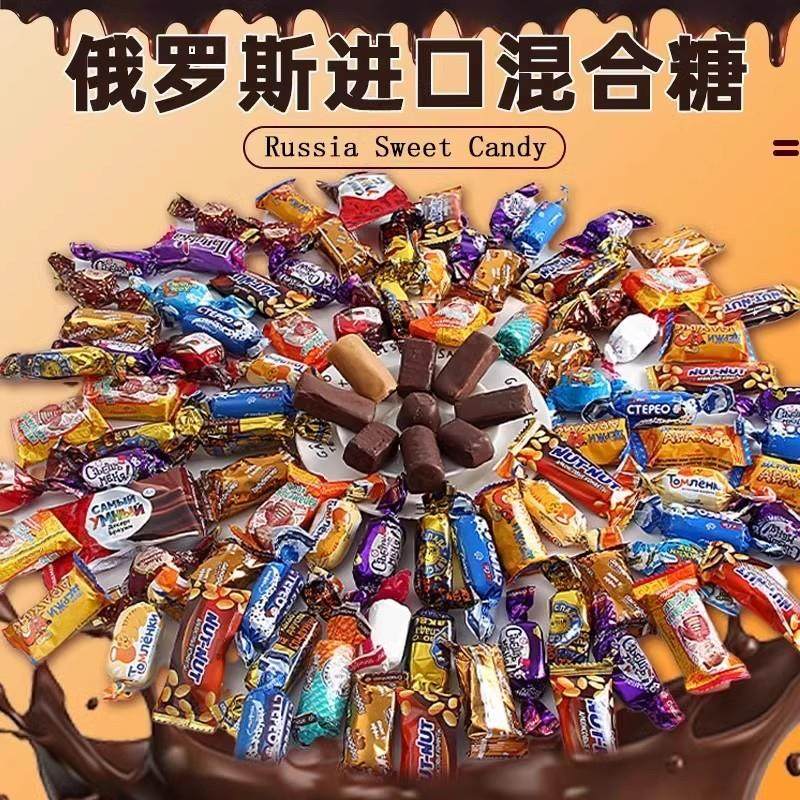 俄罗斯进口巧克力混合糖果休闲零食品结婚喜糖年货圣诞喜糖礼袋装