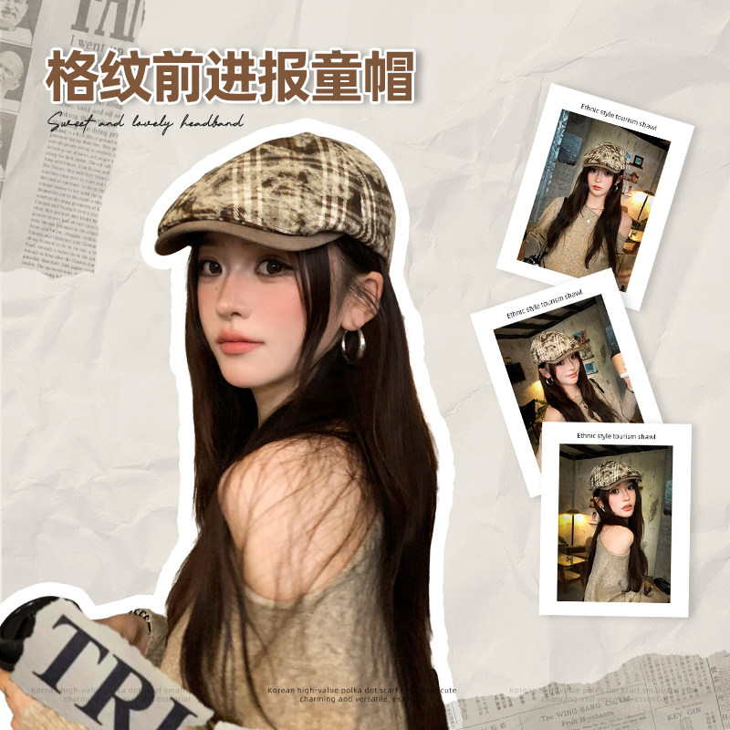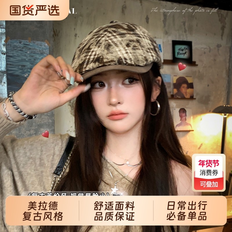 2025新款前进帽女日系复古大头围贝雷帽子显脸小春秋季反戴鸭舌帽