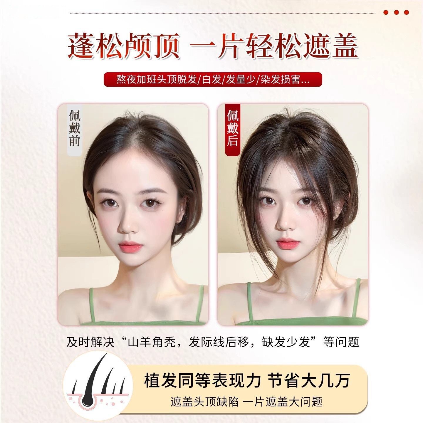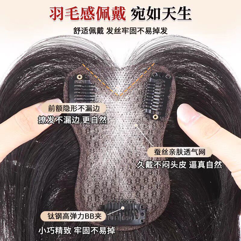 假发女片头顶补发蓬松高颅顶全真人发遮白发增发量轻薄无边假刘海
