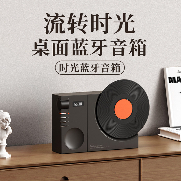 复古黑胶唱机音响高音质小型无线蓝牙音箱充电款家用桌面摆件时钟
