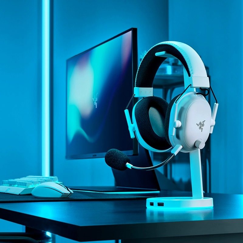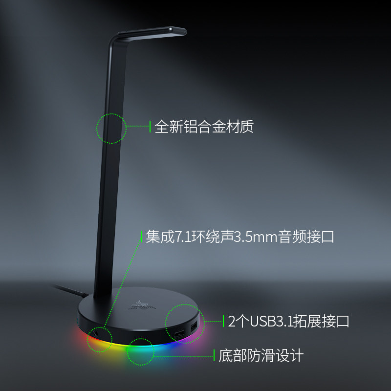 Razer雷蛇基座V2幻彩版粉晶水银RGB灯USB拓展底座头戴式耳机支架