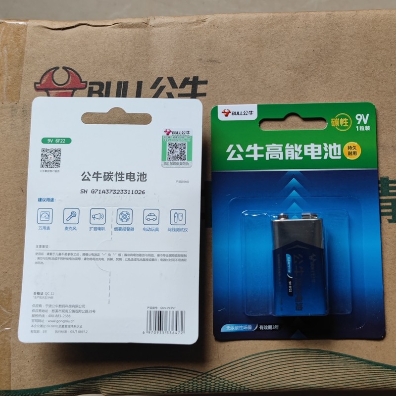 公牛9V电池九伏万用表无线话筒万用表6F22叠层方形玩具麦克风电池