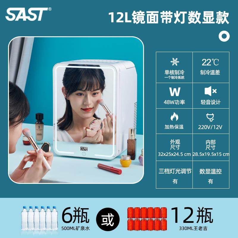 12L迷你美妆小冰箱迷你LED微型宿舍母乳美化妆镜冷藏车载家俩用