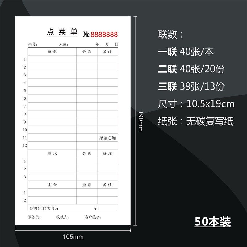 收据一联菜单f单联点菜单餐厅饭店用餐饮单夜宵带复写菜单烧烤二