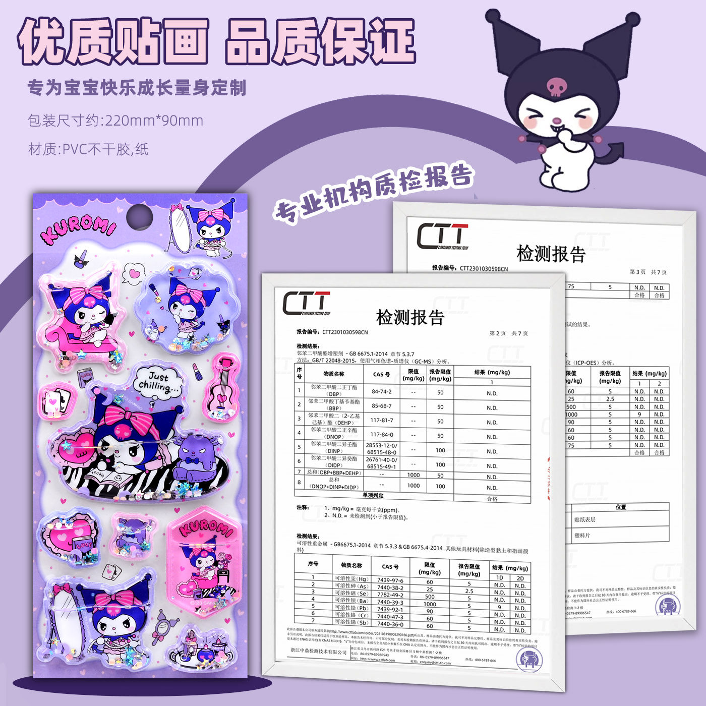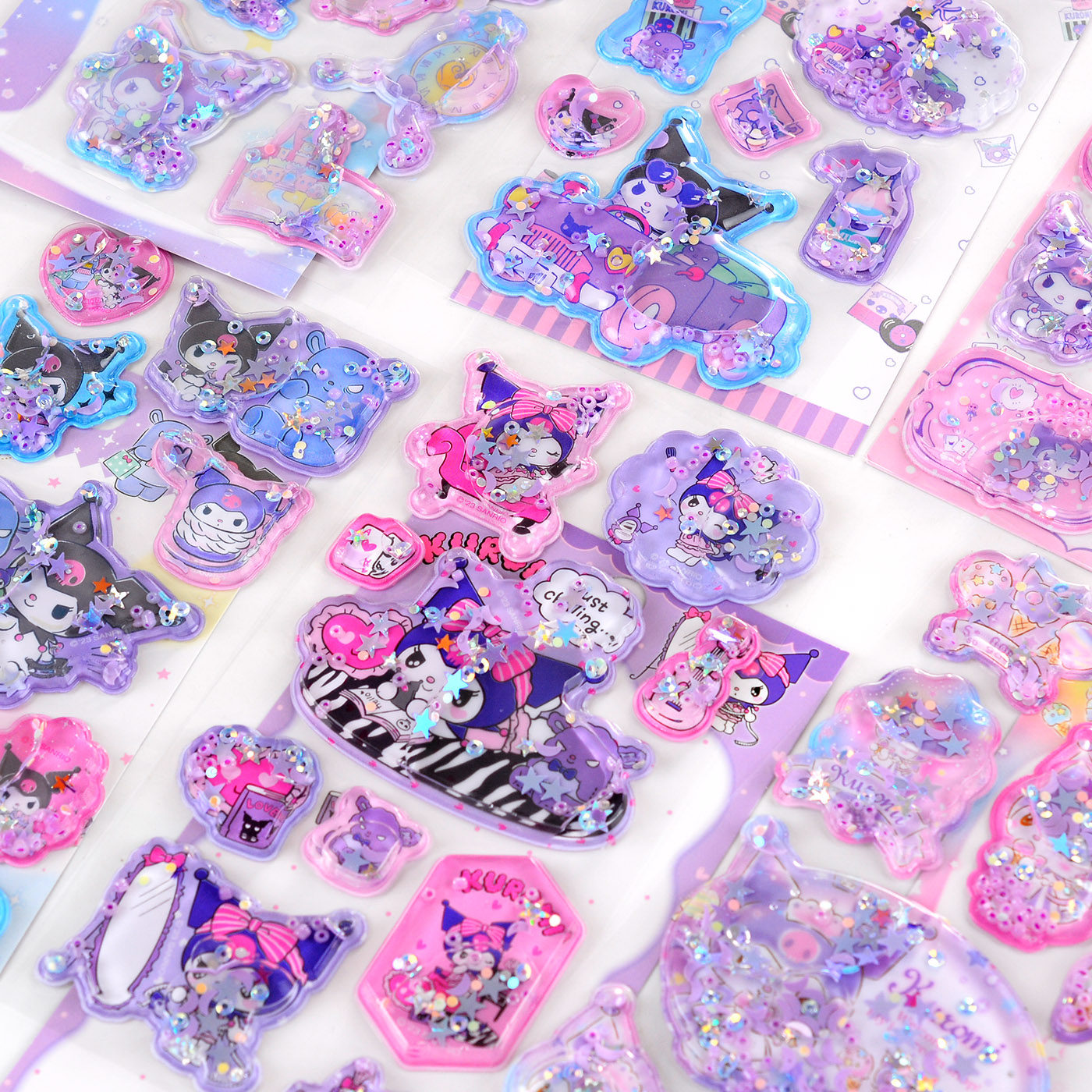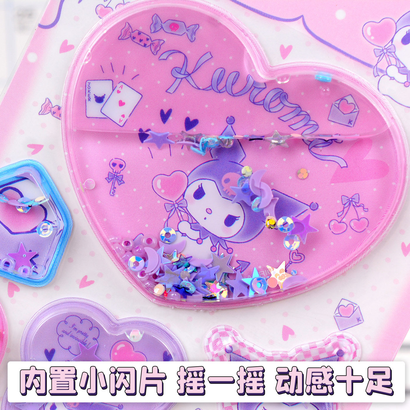 正版三丽鸥库洛米立体带水摇摇贴纸女孩儿童水晶流沙贴画手机装饰