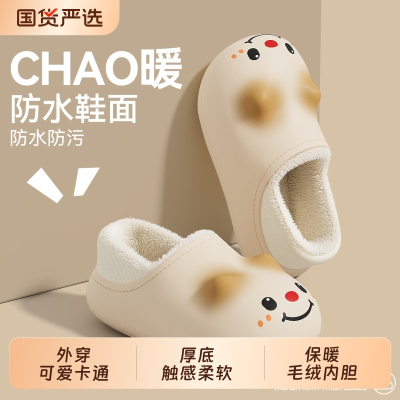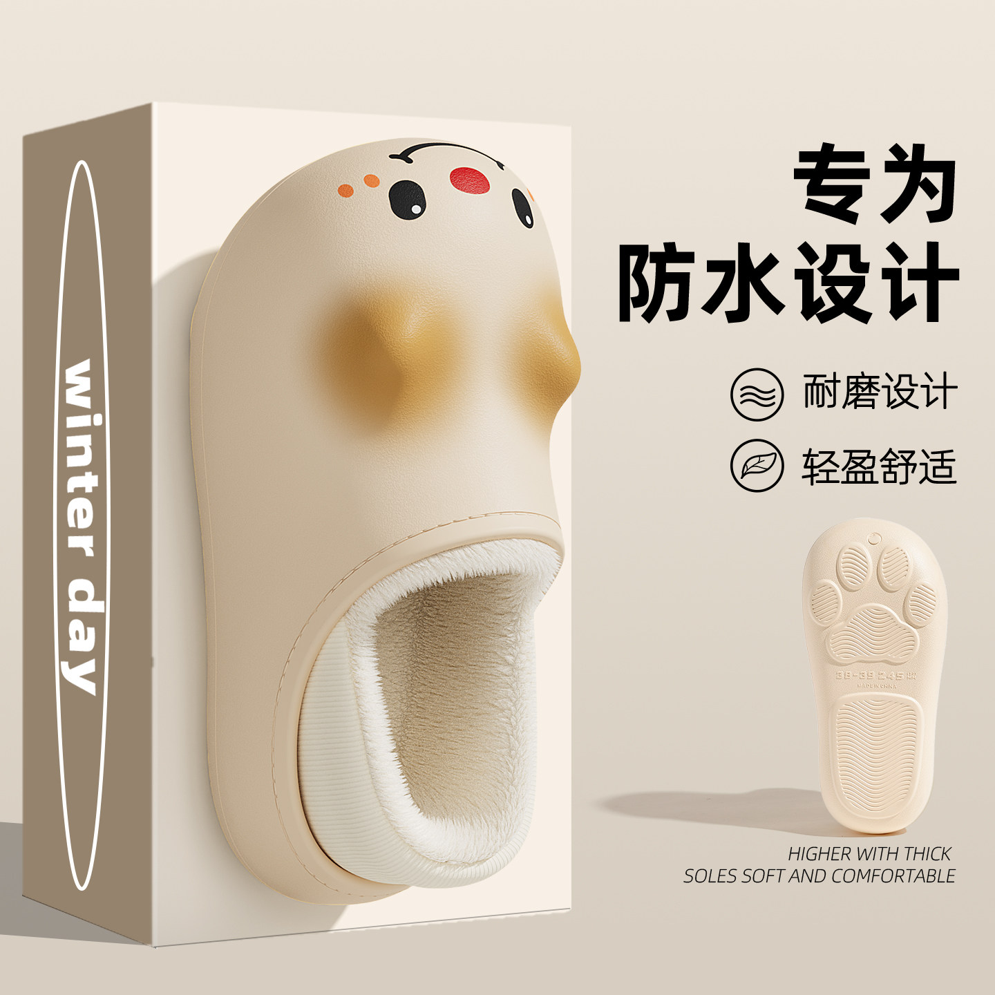 可爱棉拖鞋女款冬季2025新款防水防滑厚底包跟保暖拖鞋女士冬外穿