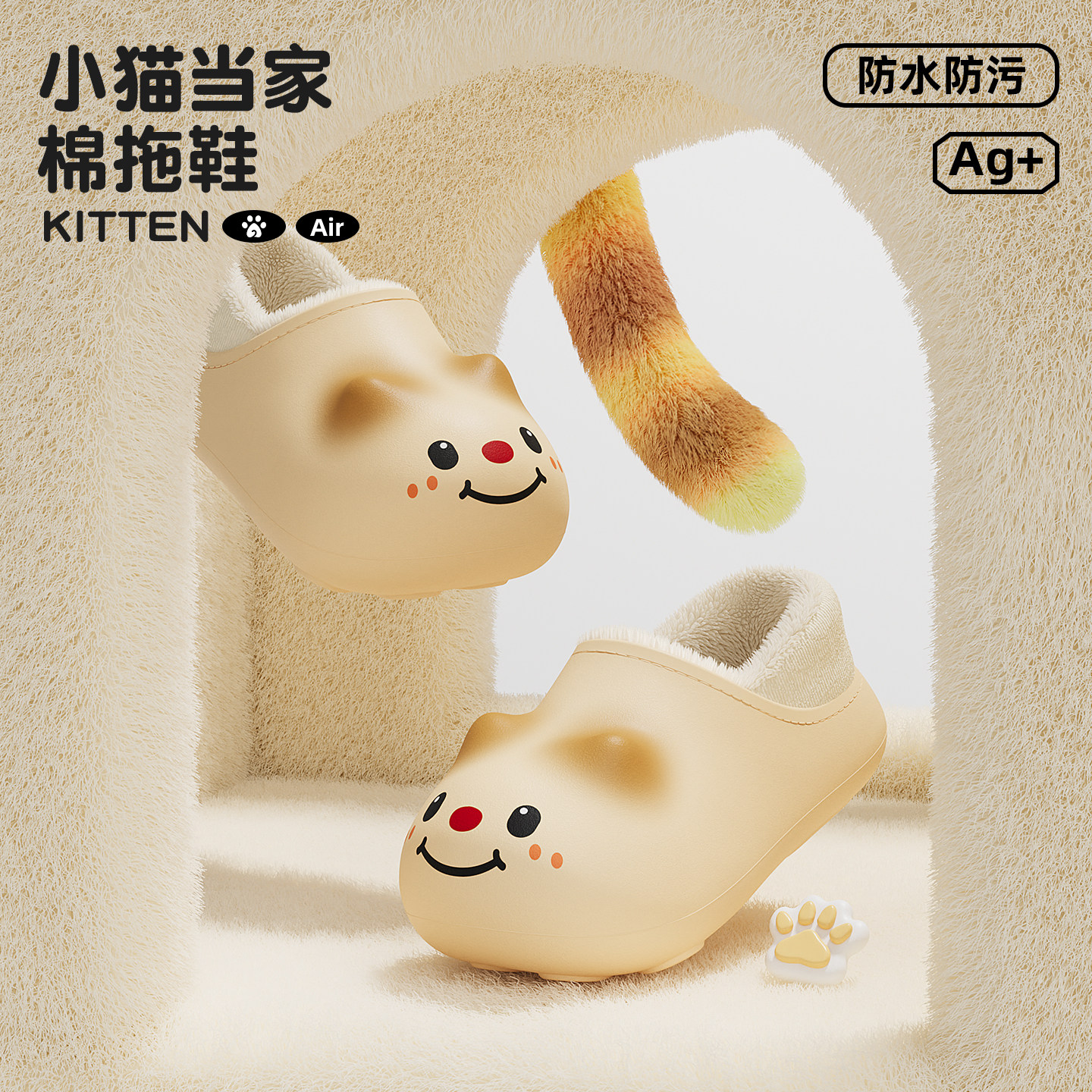 kt猫棉拖鞋女款2025新款冬季包跟室内家居保暖厚底毛毛加绒棉鞋女