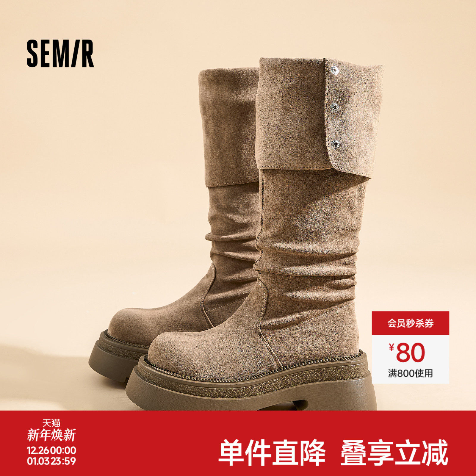 Semir女鞋长筒靴2025秋冬新款瘦瘦靴子小个子骑士靴过膝西部长靴