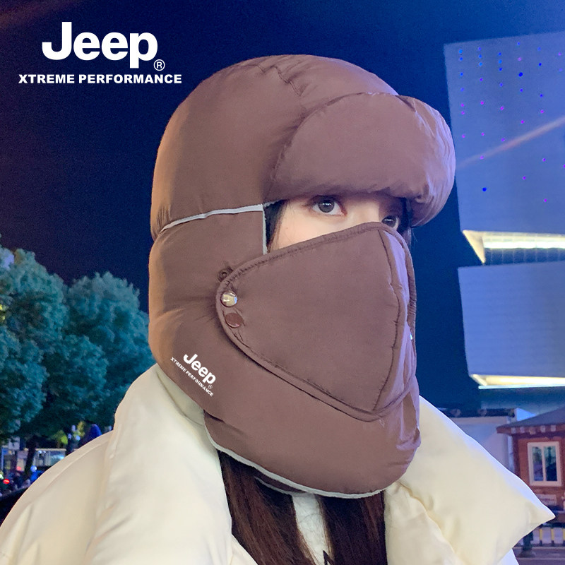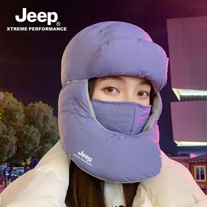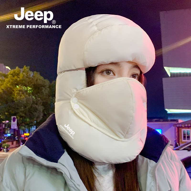 jeep吉普女士雷锋帽冬季保暖骑行防风防寒加绒套头护脖女骑车帽子