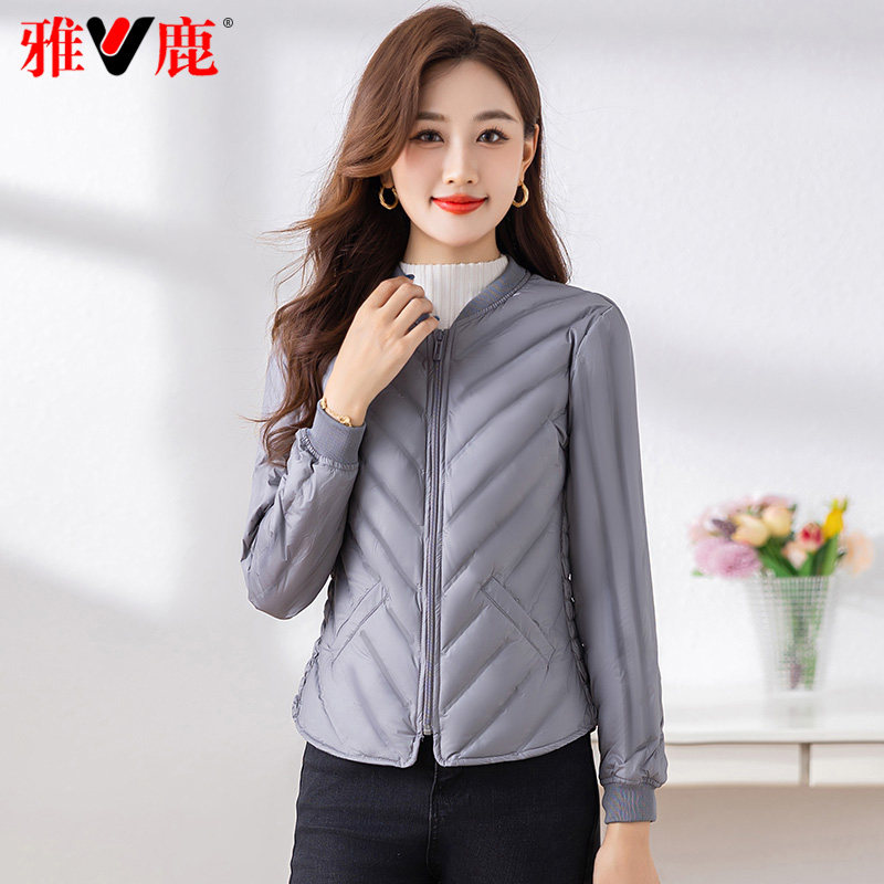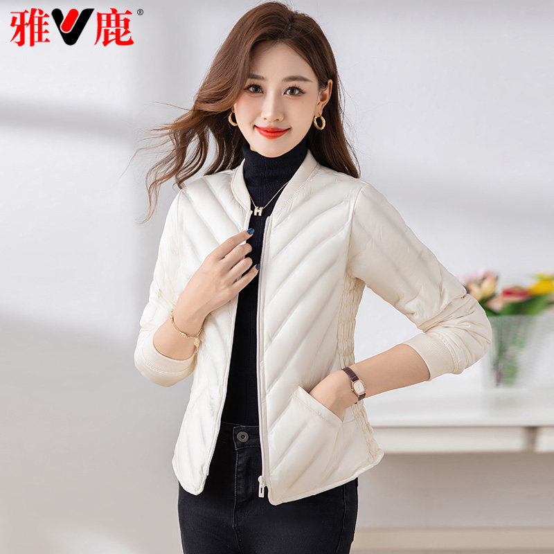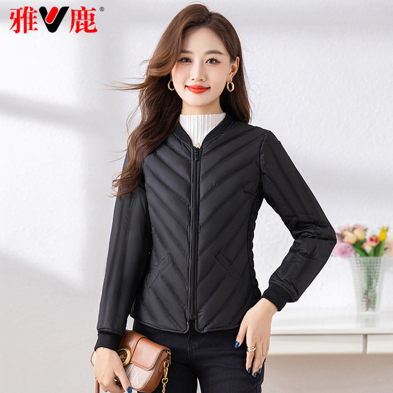 鸭鸭轻薄羽绒服女2025年秋冬反季短款立领修身舒适上衣内胆外套J