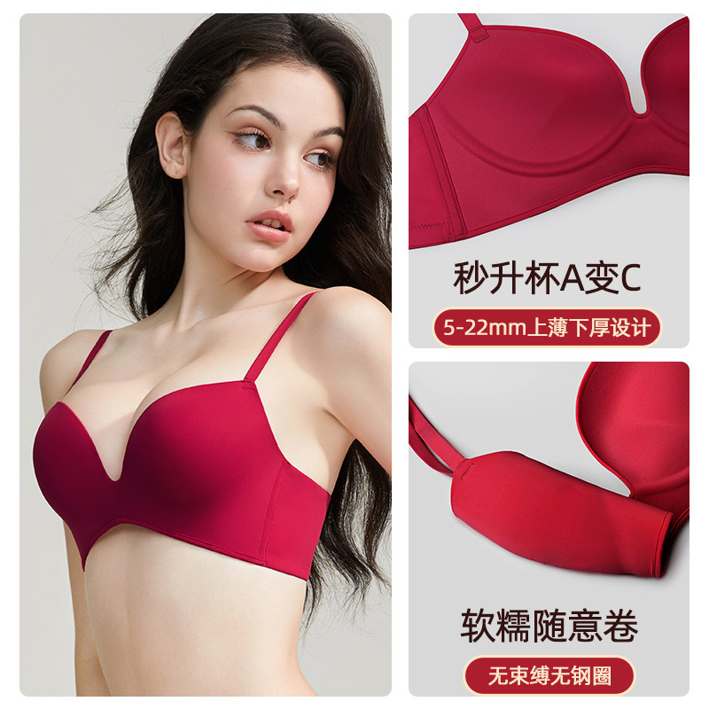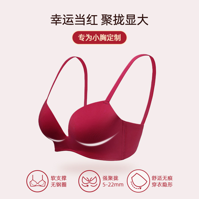 好奇蜜斯无痕红色本命年结婚内衣女小胸聚拢无钢圈性感文胸罩套装