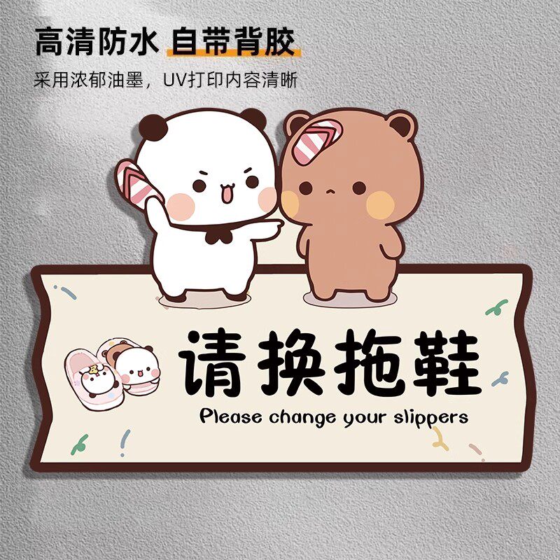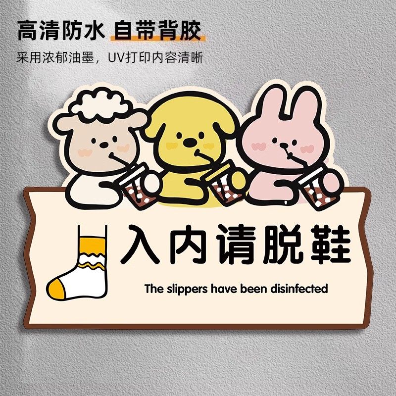 进门请换鞋提示牌入内请脱鞋提示贴请换拖鞋提示牌换鞋区标识牌创意卡通家庭入室换鞋温馨提示贴亚克力可定制