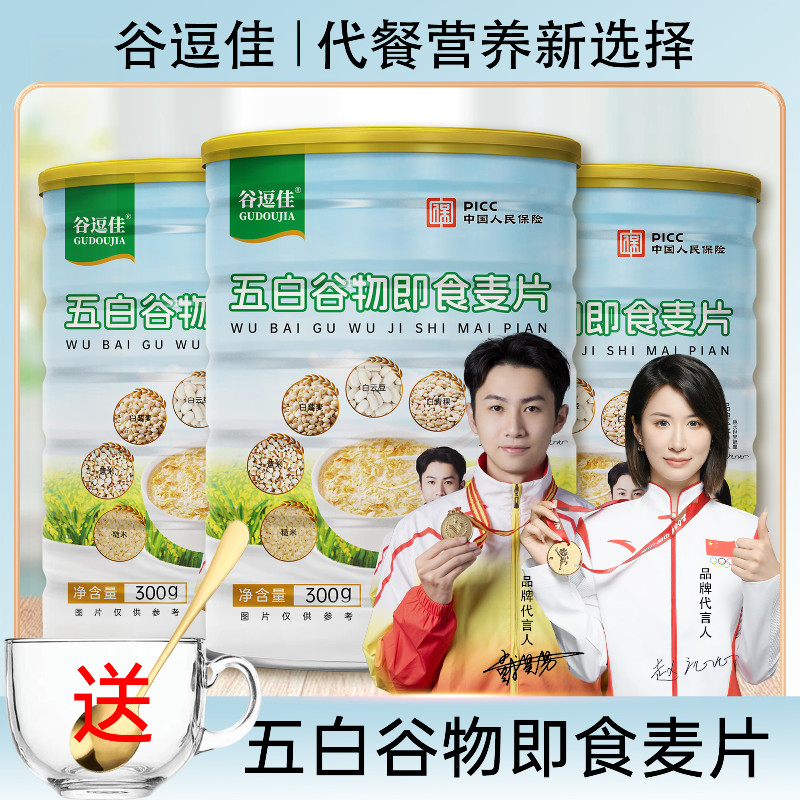 五白谷物即食麦片营养代餐免煮早餐薏米冲泡燕麦片时刻膳食健康