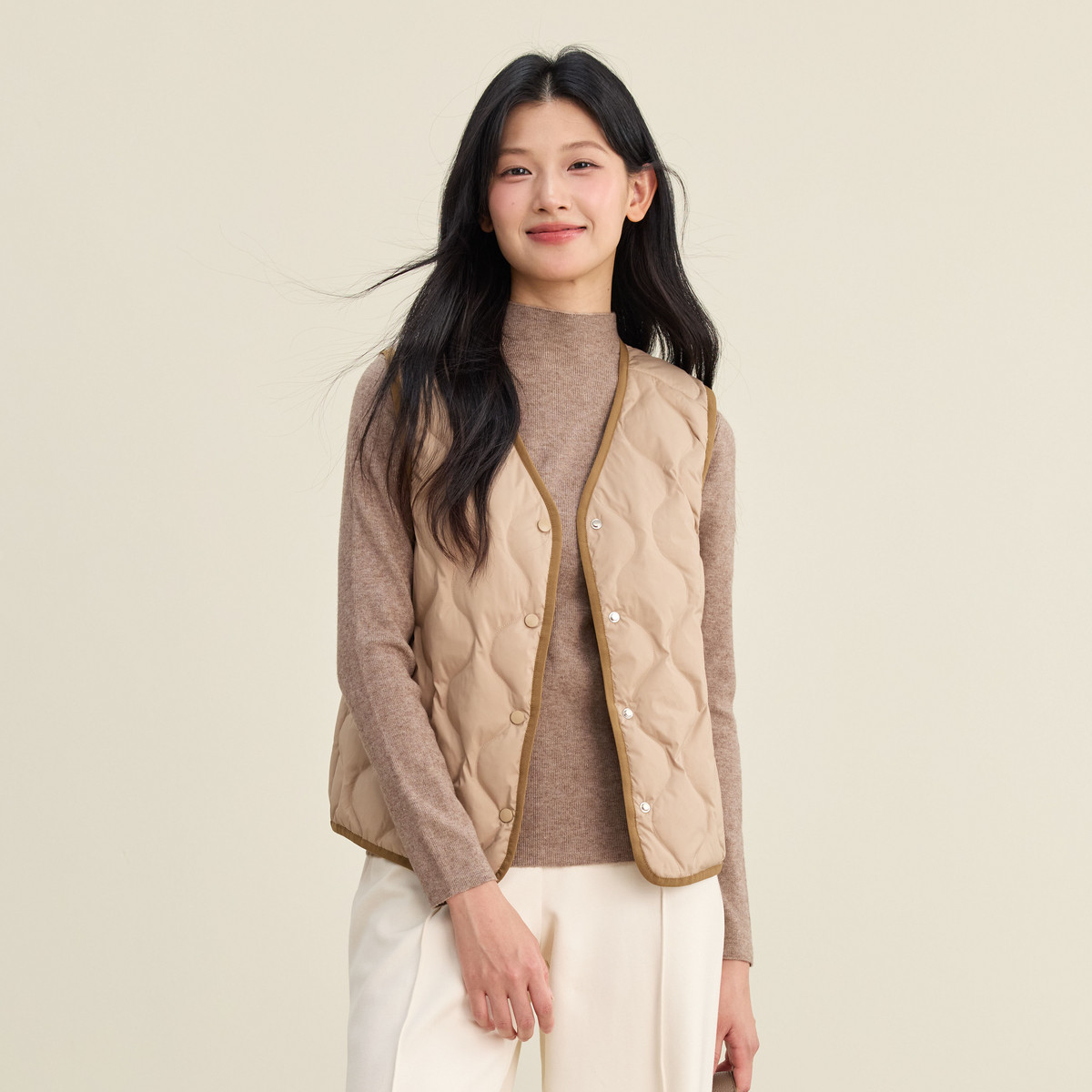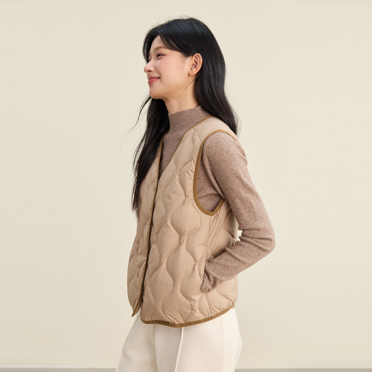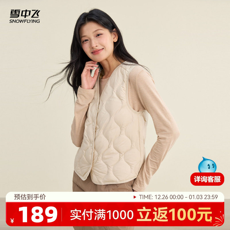 雪中飞2025冬新款羽绒马甲女短款V领日系通勤简约百搭保暖外套