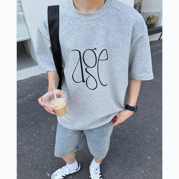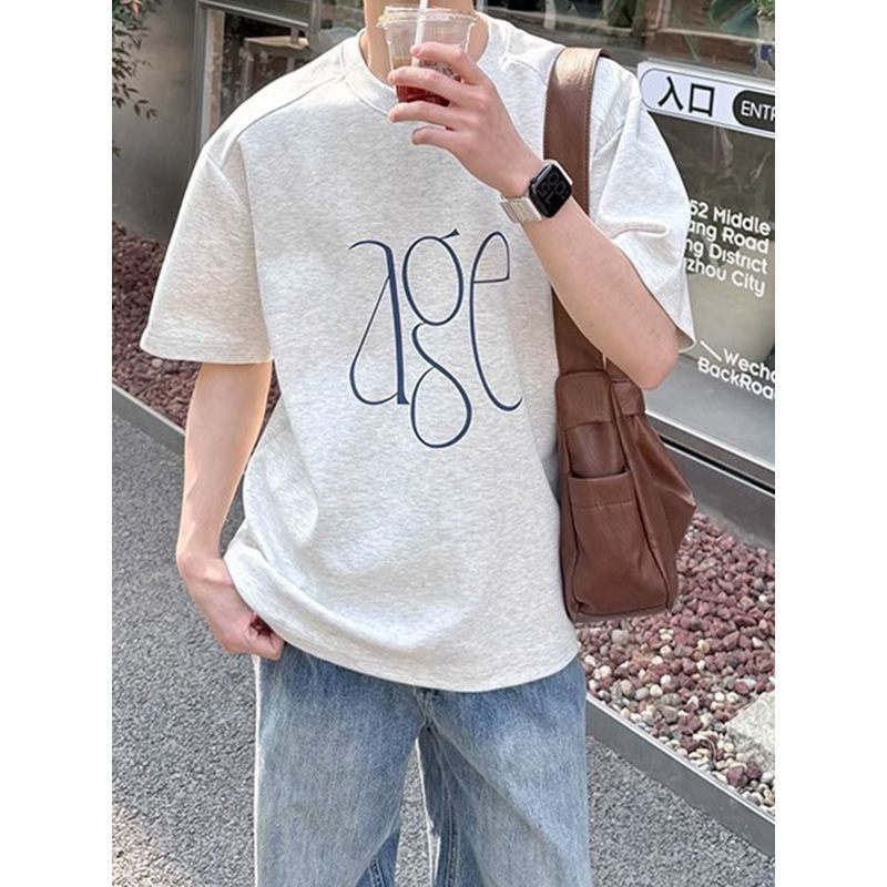 2025新款重磅双纱纯棉300G字母印花圆领短袖T恤男宽松百搭休闲潮