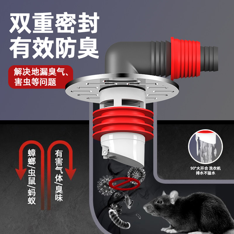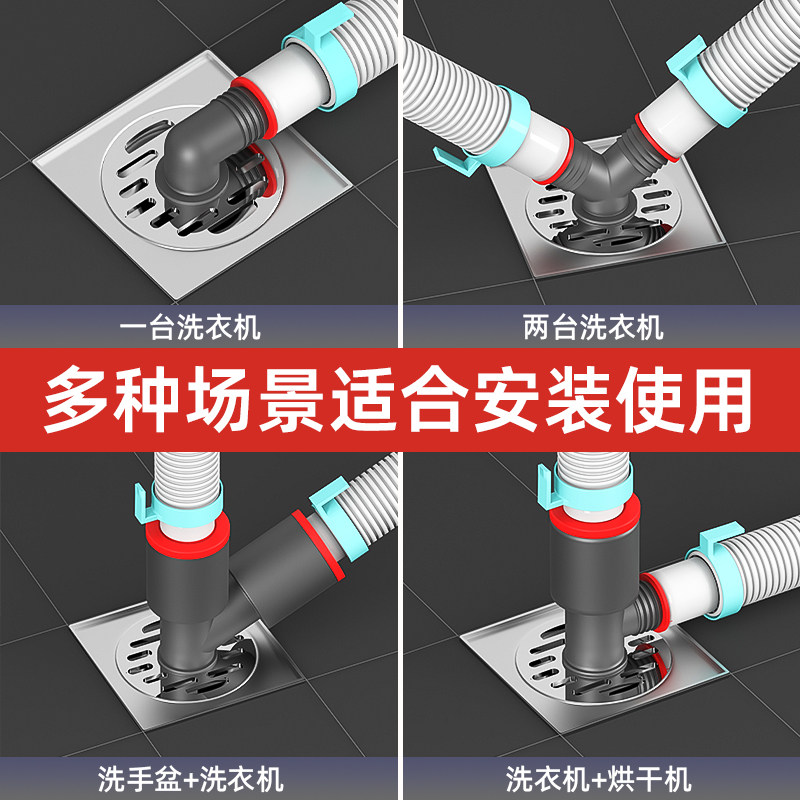 洗衣机地漏专用接头下水排水管道防反溢水二合一三通方形地漏盖子