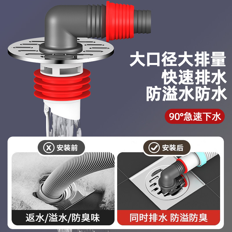 90度墙排下水管三通洗手盆弯头直角下水器洗衣机地漏接头防臭神器