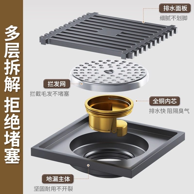 地漏加厚不锈钢防臭五金过滤芯卫生间阳台全铜下水道洗衣机浴室