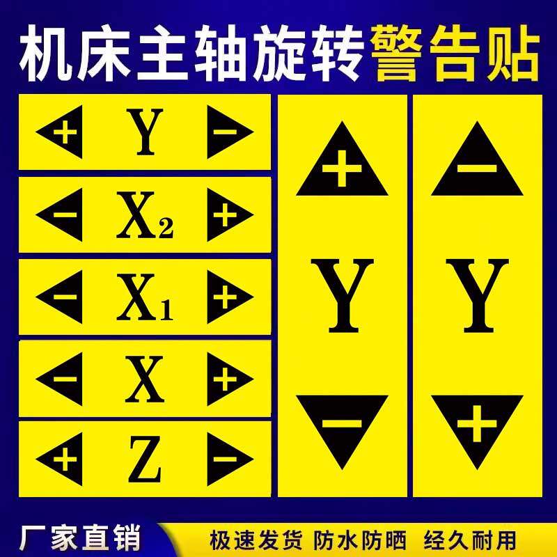 数控机床标识牌贴纸安全标识设备车床单轴标志主轴旋转方向XYZ坐标标签警示警告贴纸定制机械安全标志提示牌
