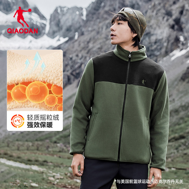 鸿星尔克加绒外套男款冬季新款男士衣服加厚卫衣运动夹克爸爸男装