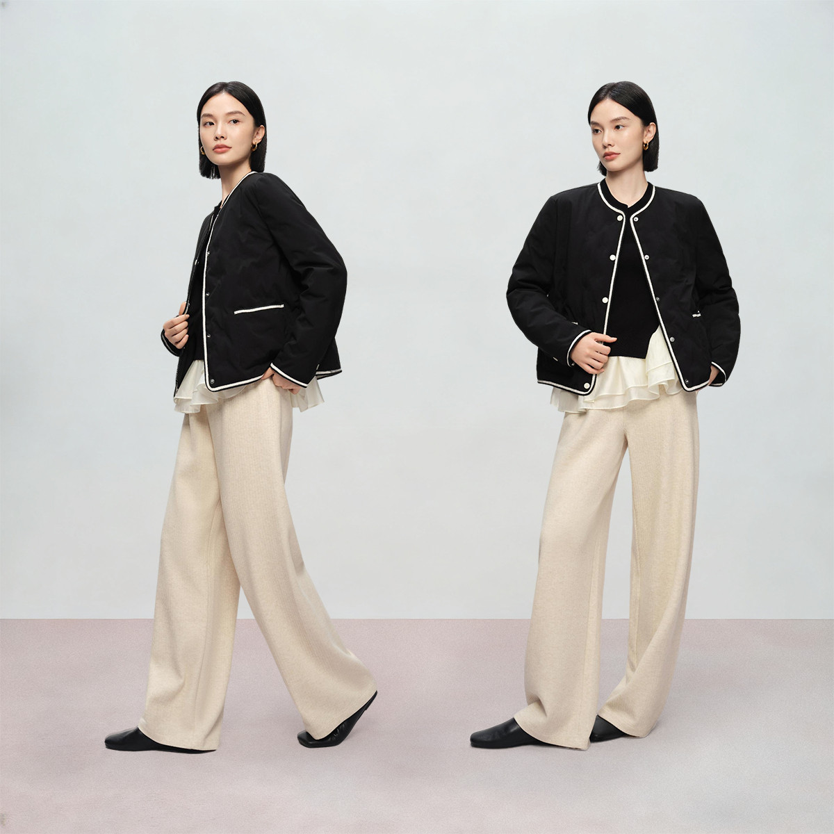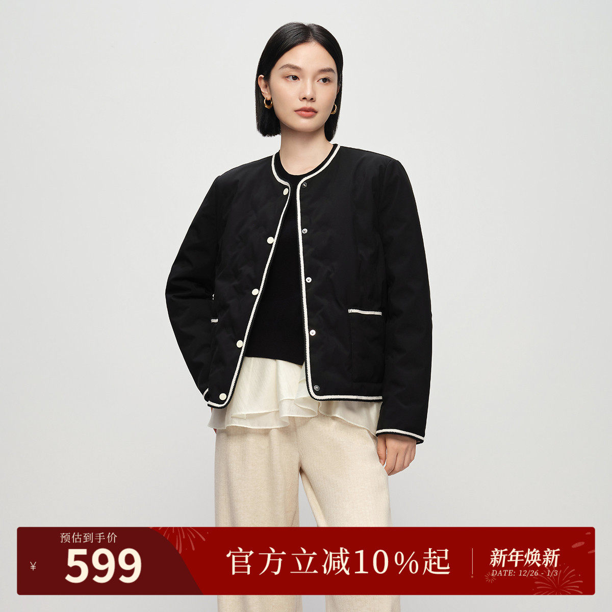 【零压轻暖鹅绒】naivee纳薇秋冬优雅小香风鹅绒服轻暖羽绒