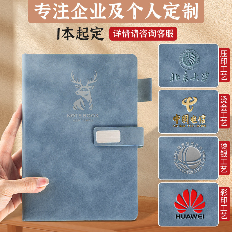 A5笔记本子企业定制刻字封面可印logo标志加厚磁扣工作记事本高档商务会议记录本B5皮面日记本大学生学习本子