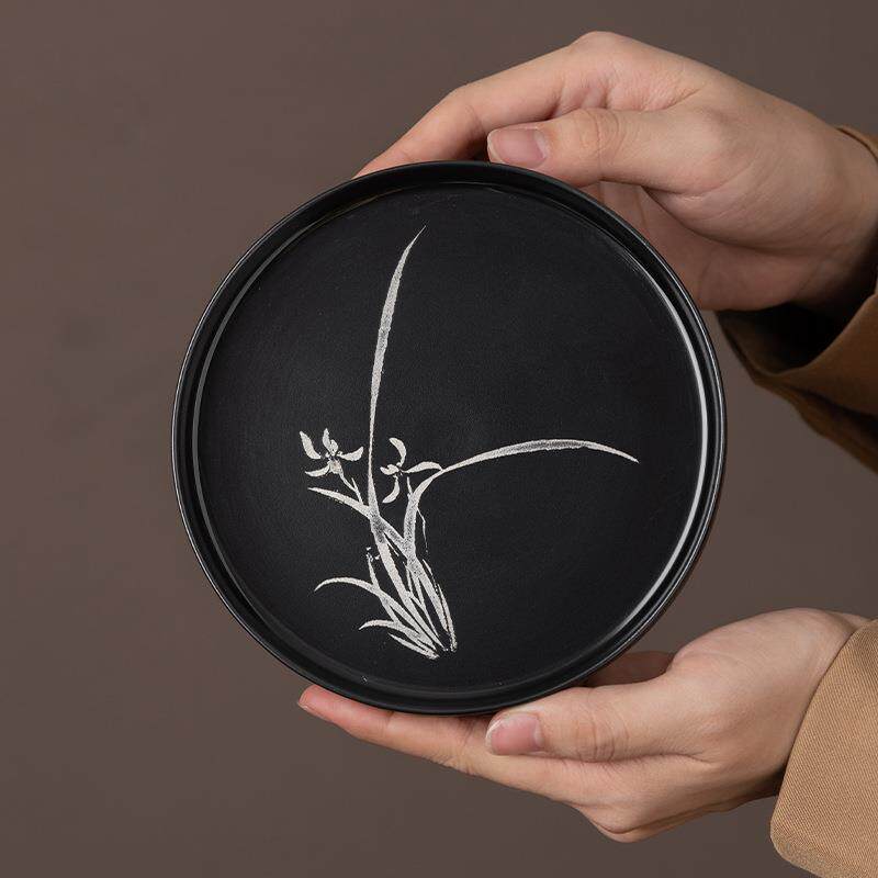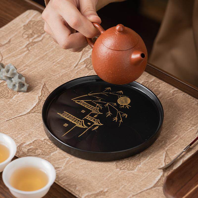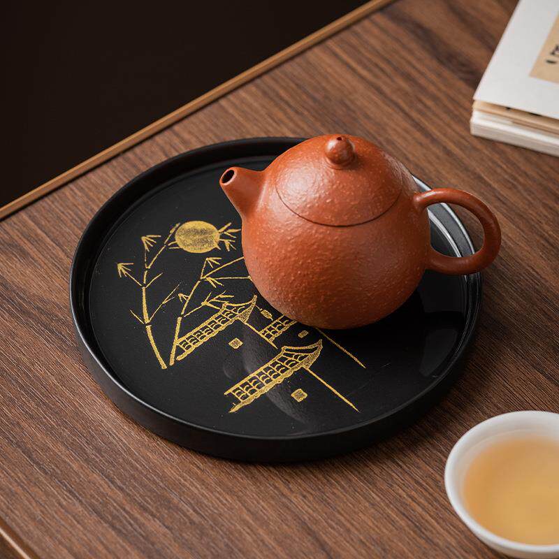 新款宫廷风中式茶几装饰品拍摄道具陶瓷茶具复古风烛台圆托盘摆件