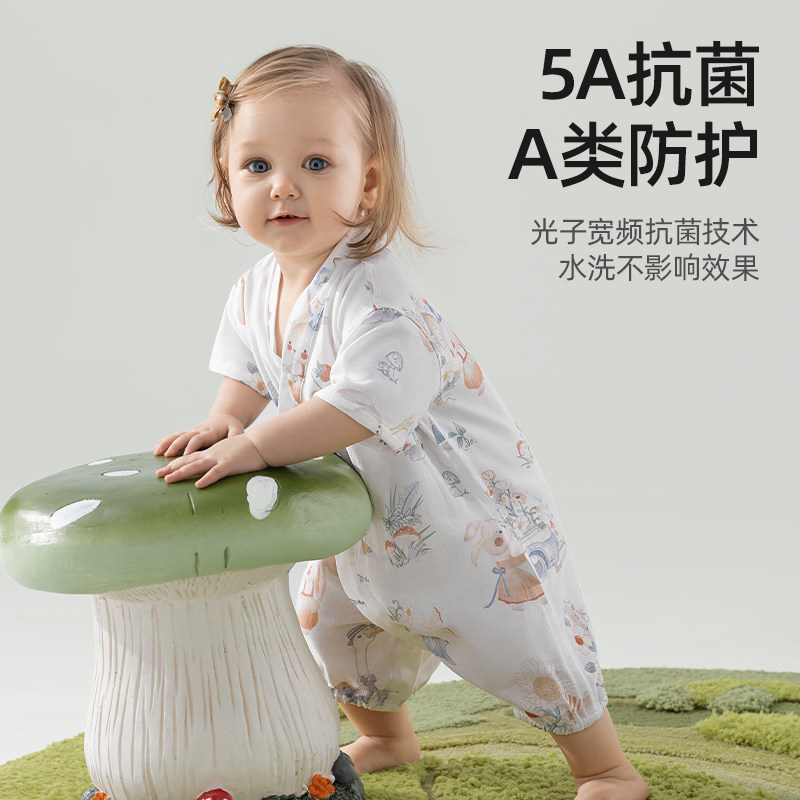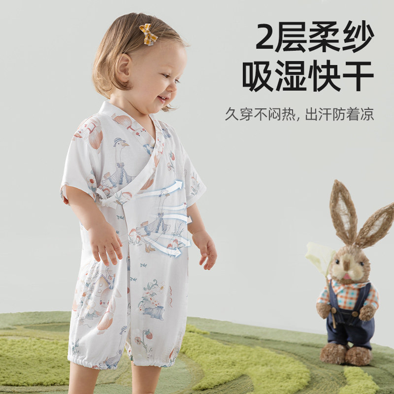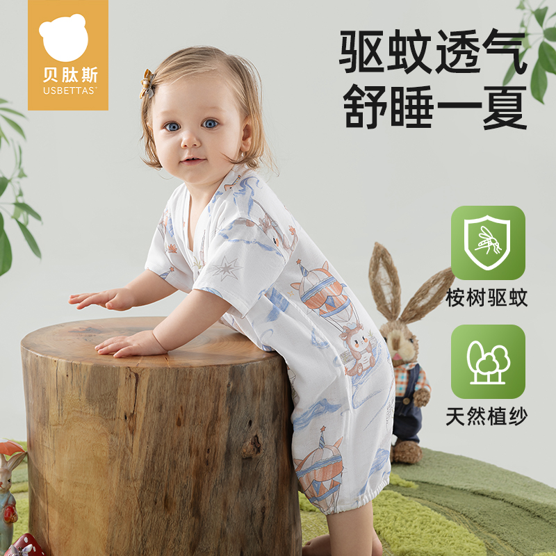 贝肽斯婴儿衣服夏季薄款竹棉连体衣新生儿纱布哈衣短袖宝宝睡衣