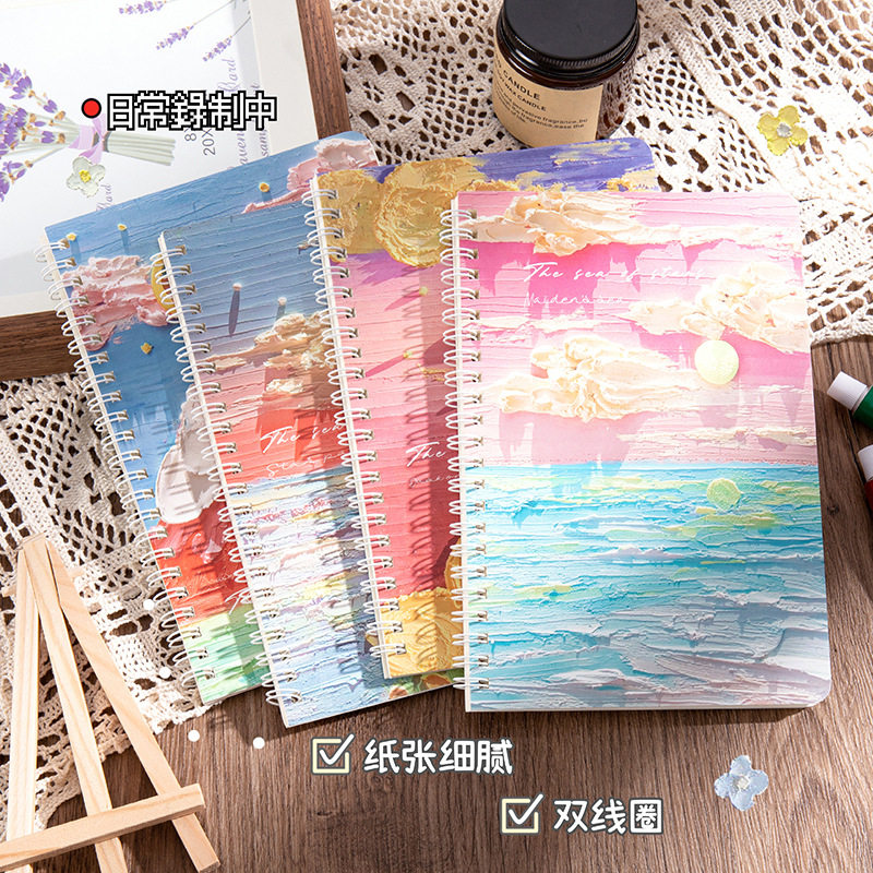 ins油画风景A5线圈本学生日记本 可爱文具记事本加厚横线笔记本子