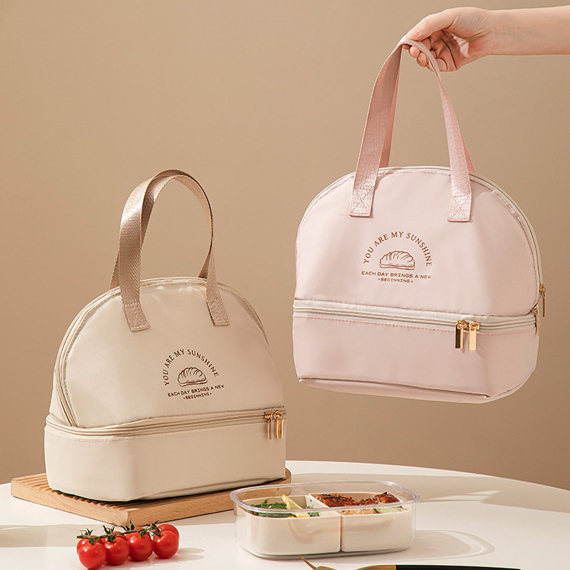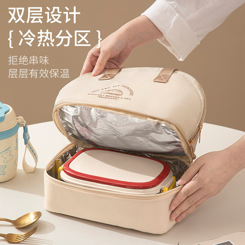 新款双层饭盒包加厚铝膜便当包大容量保温手提袋外出野餐饭盒袋