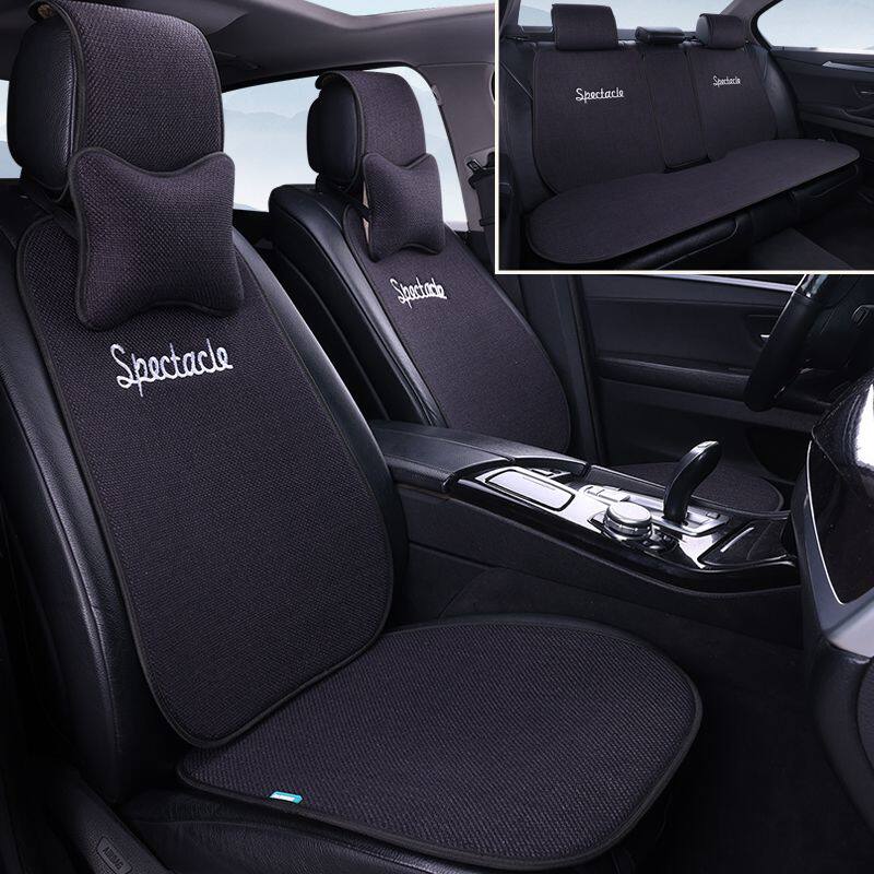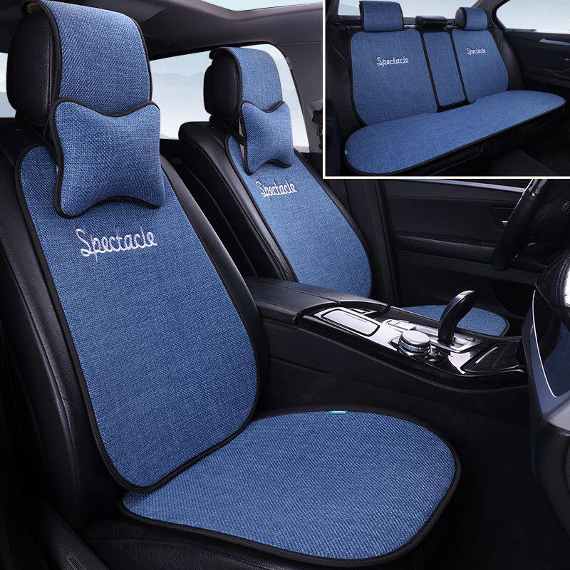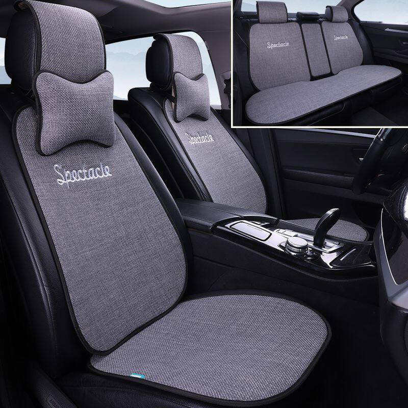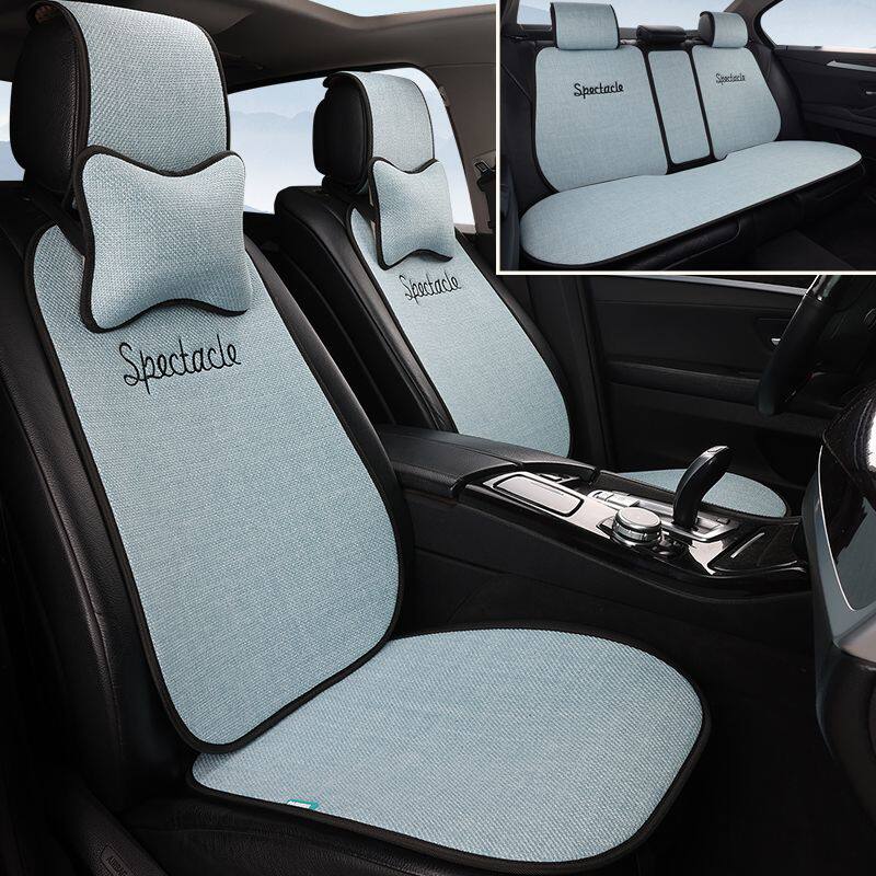 汽车坐垫四季通用亚麻小蛮腰防滑透气纯色女士网红棉麻简约座垫套
