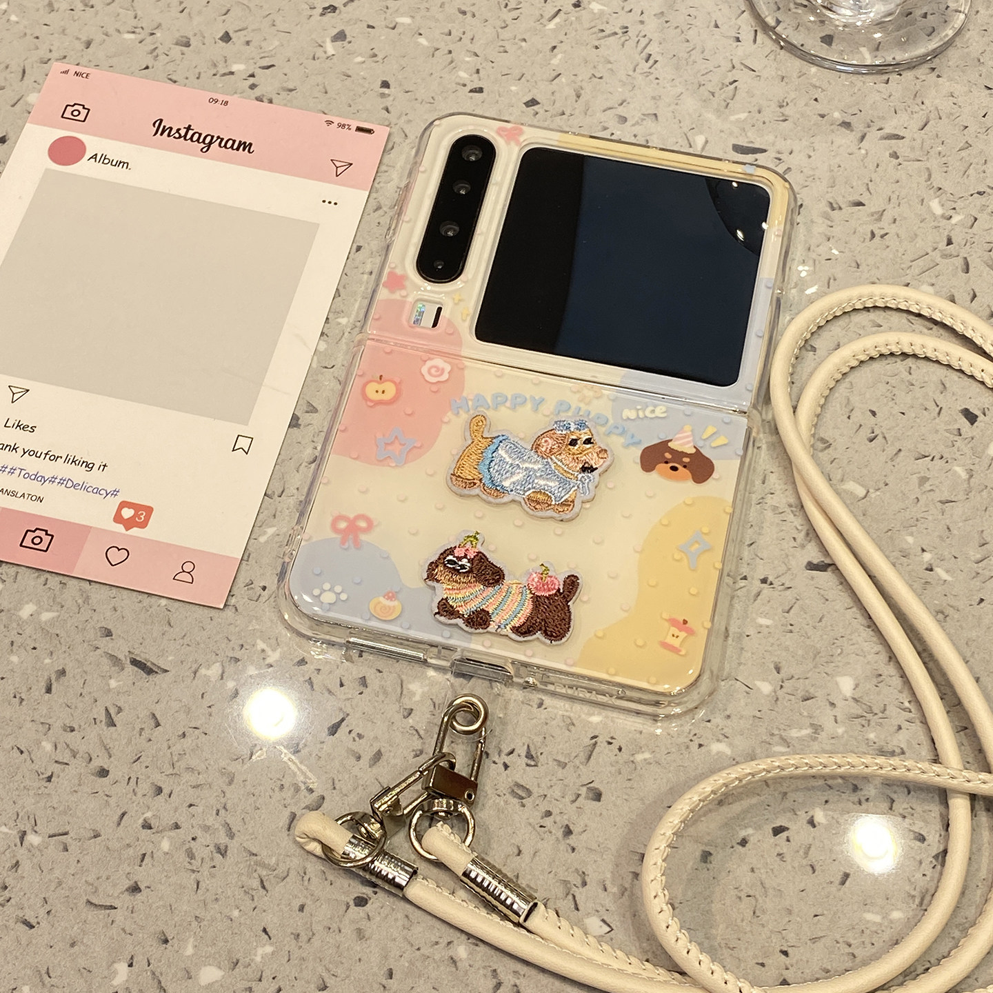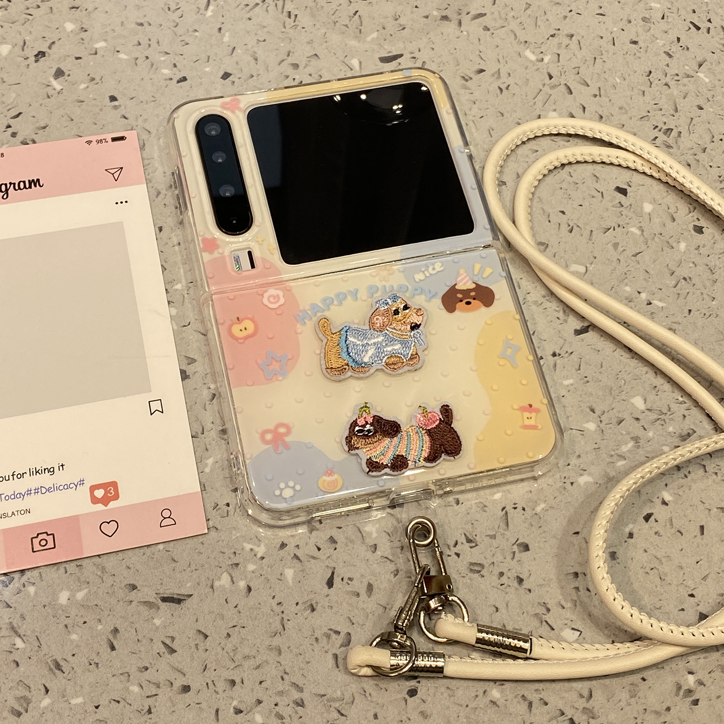 可爱粉蓝色块刺绣腊肠狗斜跨挂绳适用华为purax手机壳pura折叠屏x典藏版Pocket2超好看外壳女新款高级感小众