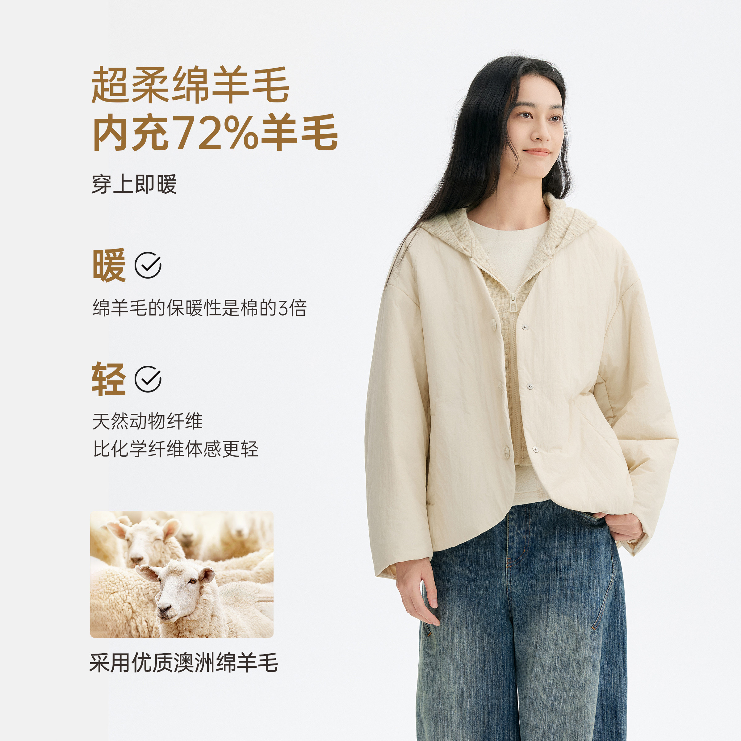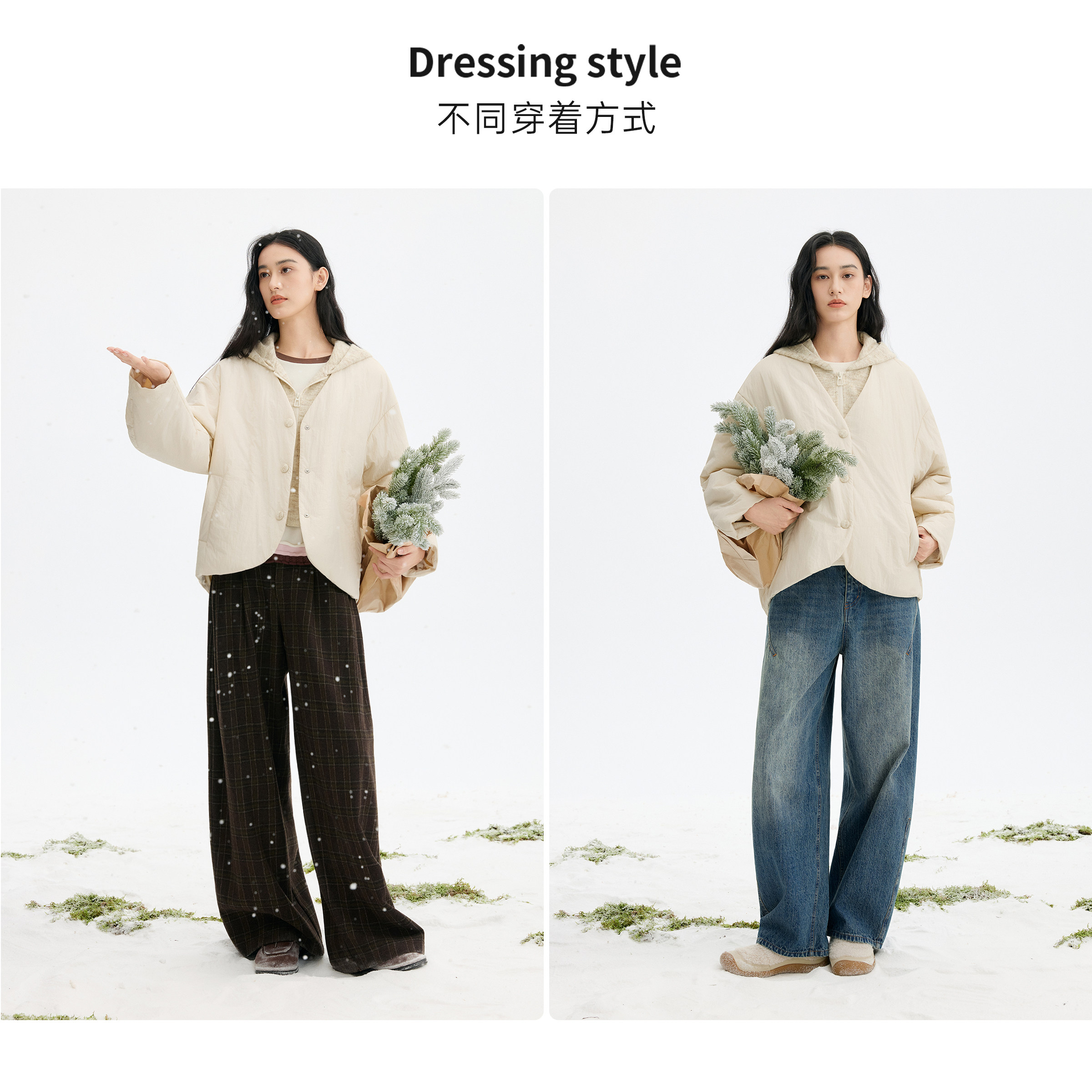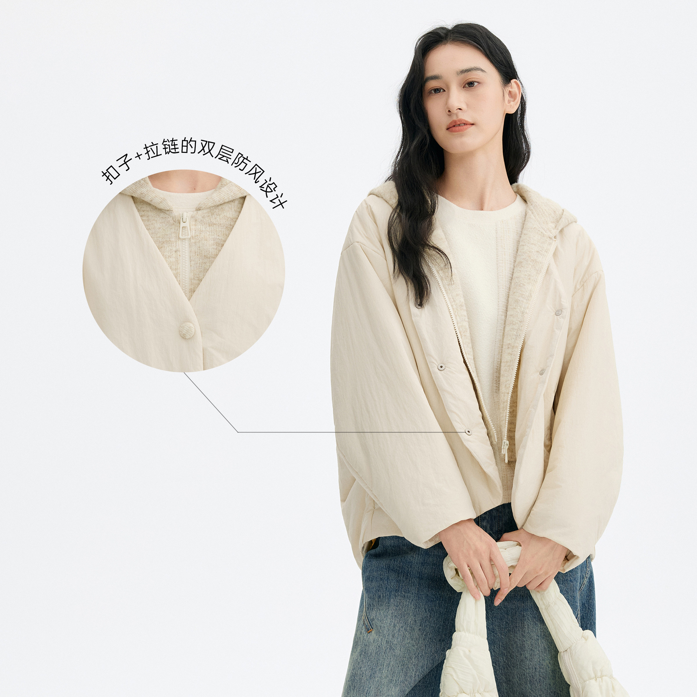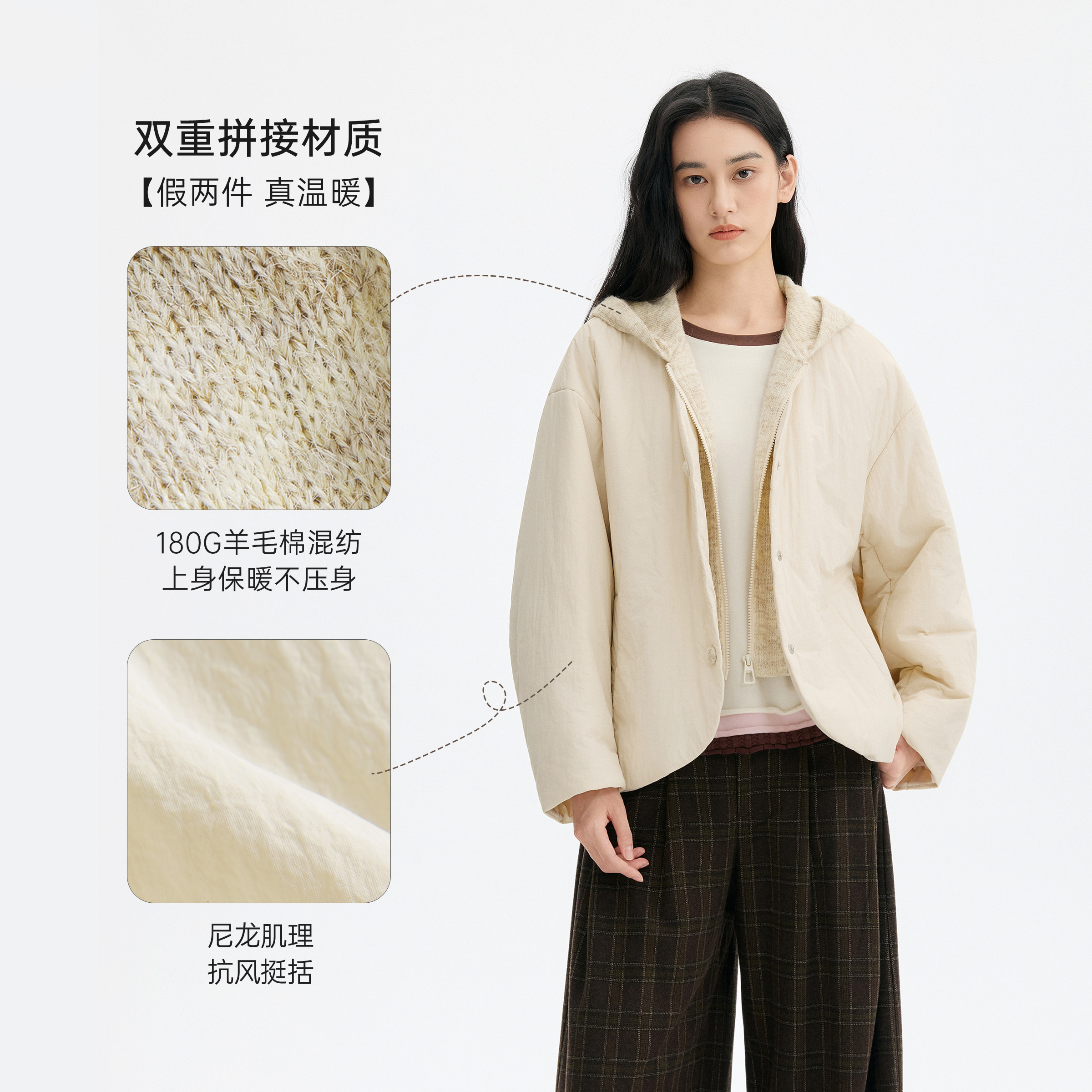 【假两件】飞鸟和新酒2025冬季新款小个子带帽白色羊毛棉衣外套女