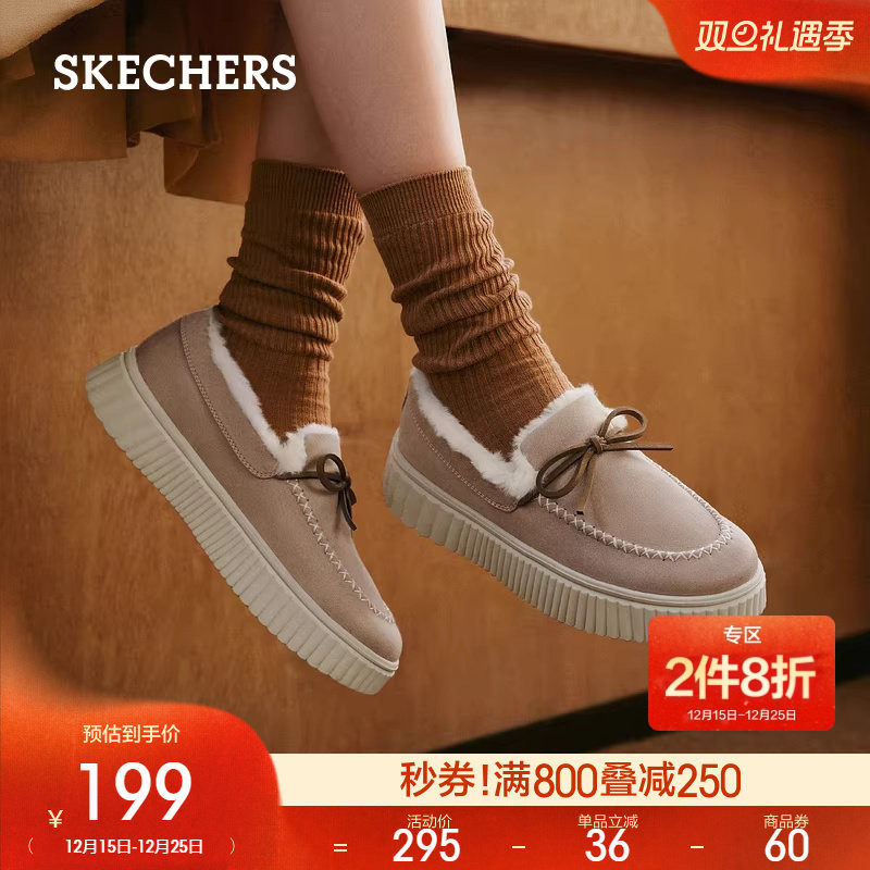 斯凯奇奶贝鞋|冬季女鞋加绒保暖乐福鞋豆豆鞋玛丽珍鞋蝴蝶结单鞋