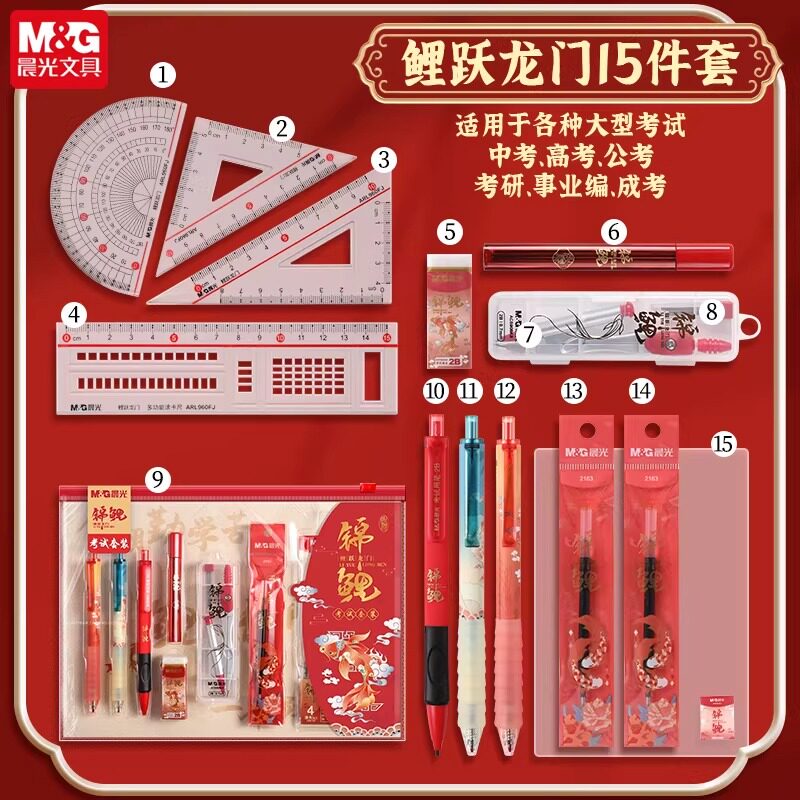 晨光锦鲤考试专用文具套装礼盒中考高考必备学生答题卡专用涂卡笔2b铅笔圆规公务员国考考研学习用品文具套装