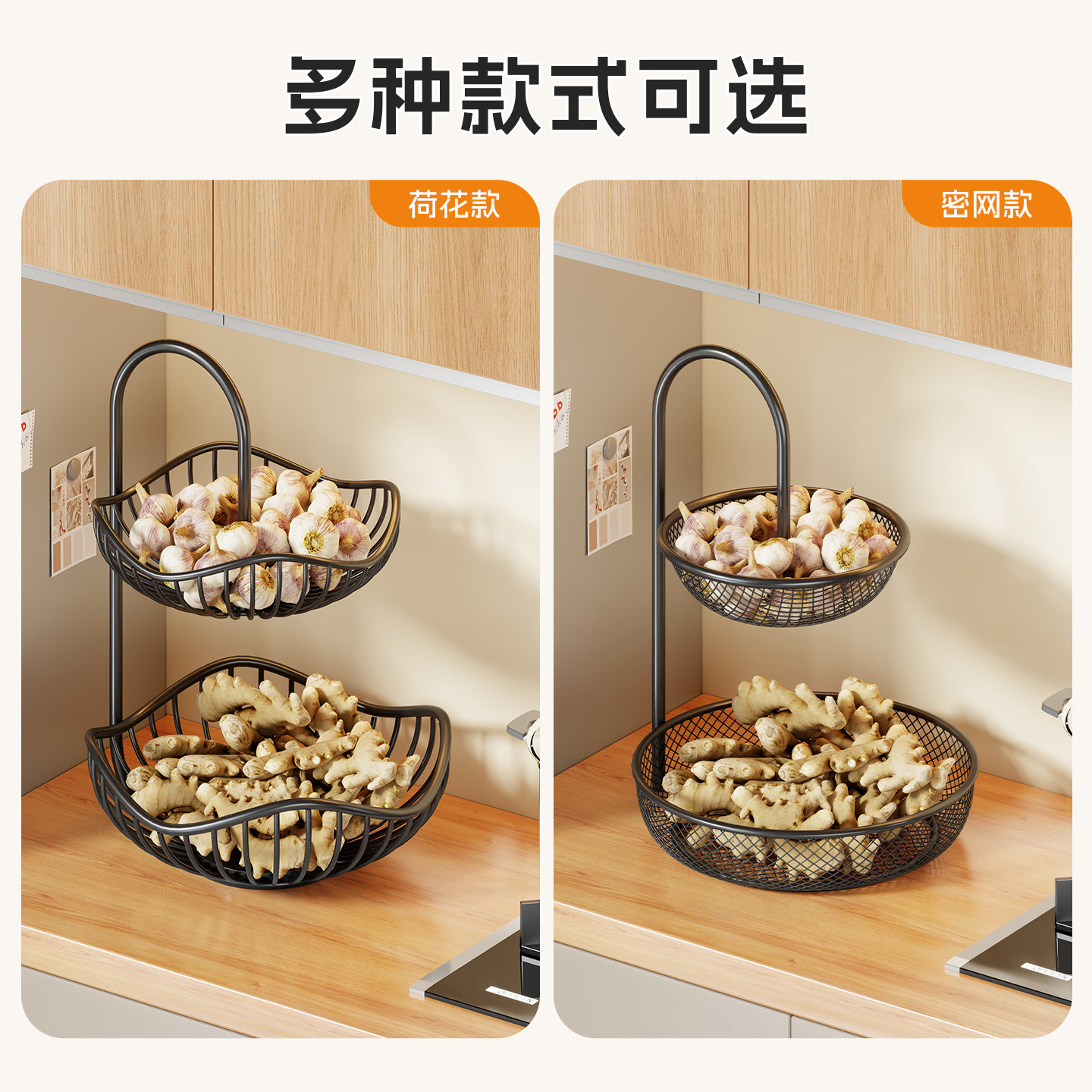 厨房葱姜蒜果蔬菜篮收纳架放生姜蒜头台面储物篮多功能整理架收纳