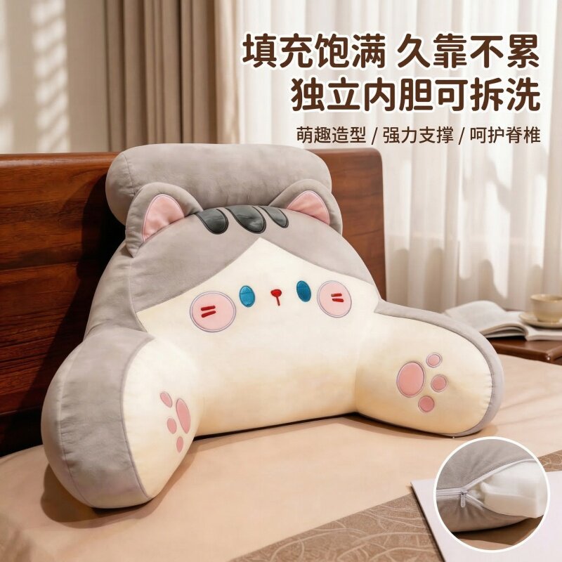 三花猫宿舍单人床靠枕可拆洗床头软包学生枕头护腰垫睡觉夹腿抱枕