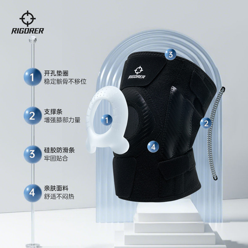 准者运动护膝魔术贴绑带专业硅胶防滑户外登山跑步关节防护护具